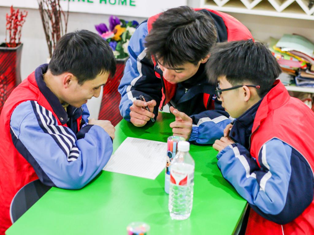 这是一个免费托养智力残疾人士的公益机构,大概有十几名智力残友。他们每天按课表作息,上午九点到下午四点在家园度过,志愿者们会在这里教他们算术、写字,也会让他们尽情展示自己的才华。