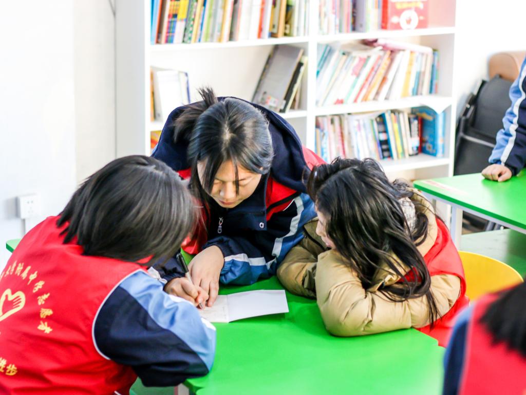 志愿者们两三人一组,分组进行简单教学。有的教算术,有的教写字,有的教画画。志愿者们纷纷使出了小学时的绝招——扳手指,为了使教学更生动有趣,楚琦还拿出了果冻和巧克力进行实物加减,每一个小课堂都是温馨和谐的。