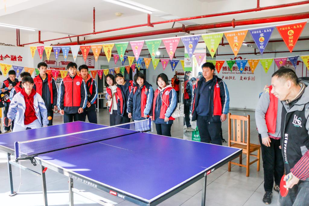 志愿者们和小鲸打乒乓球,开始是一个人陪练,接着是越来越多的同学陪练,大家轮番上阵,均败下阵来。换了水平最高的宋老师上去,两位高手对决,非常精彩。小鲸很自豪地说,他从十四五岁就开始打乒乓球了,还在比赛中获过奖呢!