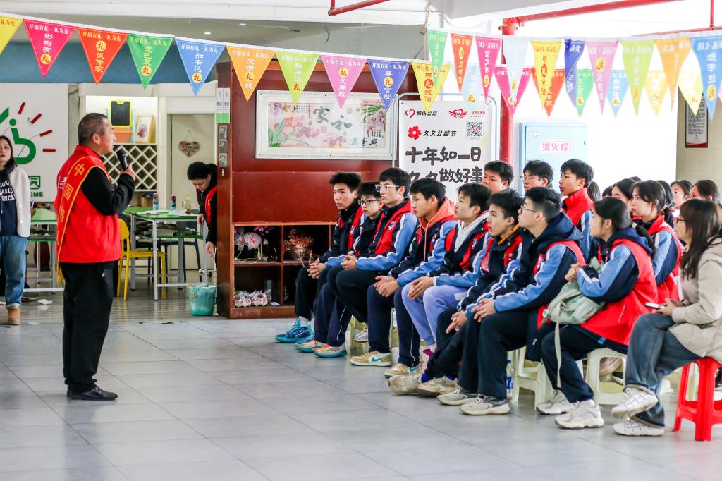 袁亮坤老师步履匆匆,从湘雅三医院赶过来,为大家宣讲雷锋精神的内涵和主旨。袁亮坤老师是“中国好人”、长沙市劳动模范,也是全国岗位“学雷锋标兵”。退了休的他,每天都在做无偿献血、禁毒宣传、关爱残疾人、救助孤儿、文旅交通等志愿服务,还加入了校外雷锋辅导员的队伍。他讲述了自己从事志愿服务的经历,带领大家唱起了“学习雷锋好榜样”,鼓励年轻人多参与志愿服务活动,给予弱势群体力所能及的帮助。同学们倍受感动,纷纷宣誓“请党放心,强国有我!”