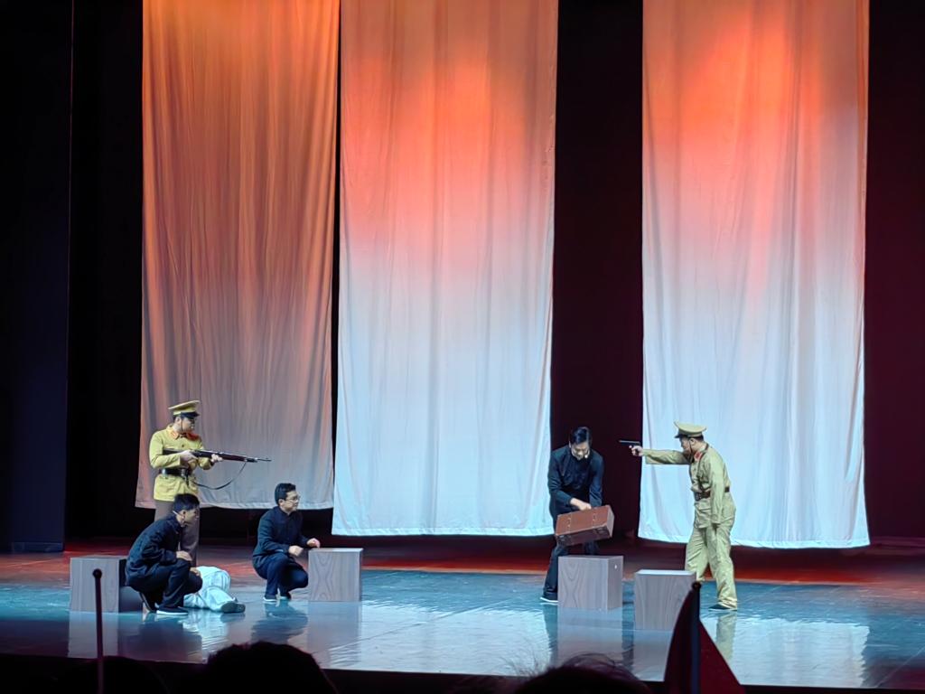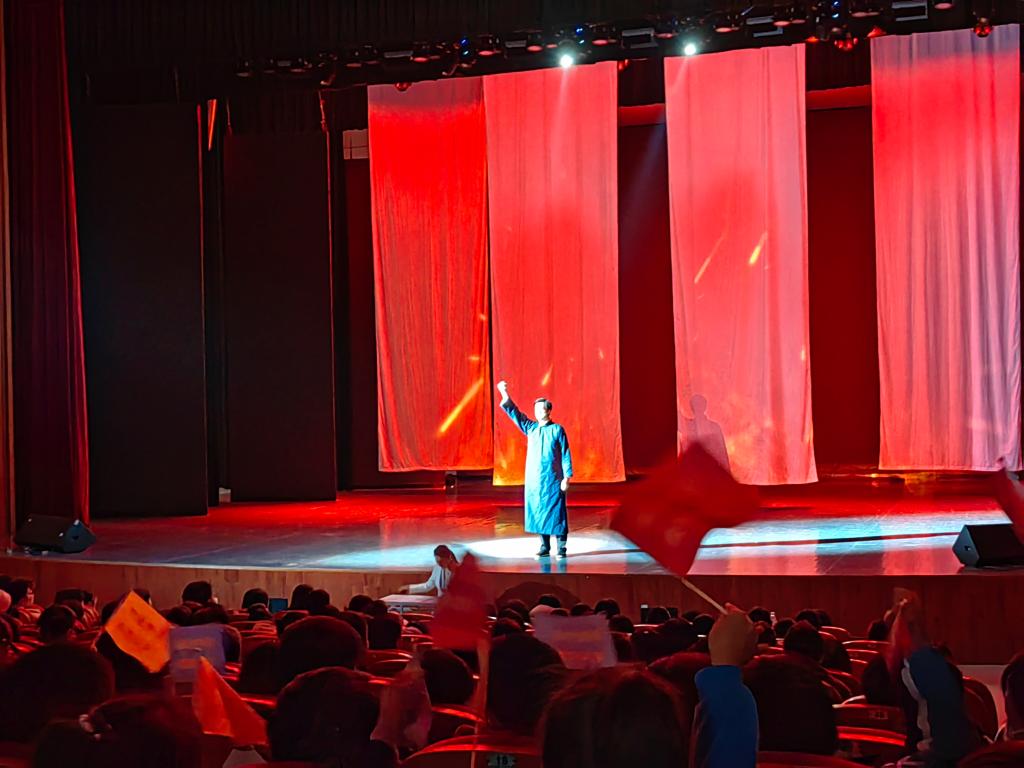 我校学生整场全神贯注,在誓言以及“五四”场景再现片段参与互动,最后一起高唱《国际歌》。通过演员们的精彩演绎和多种互动方式,同学们深刻感受到革命前辈为救国的不懈努力,对信仰的坚毅执着以及从小树立伟大理想的重要性。