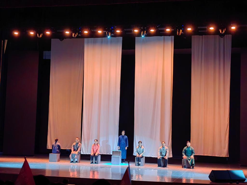 这一场公演,每一位演员和台下的观众都认真的参与了,演员们用自己精湛的演技,将刘少奇同志在不同时期的思想转变和从小具有的智慧、优秀品质与革命初心都表达出来。我从中得到了一些提示,如要多读有益的书,要多思考,要勇于接纳新事物,要向优秀学习……并且我也从中反思了自己的一些缺点,我应当坚守信念、无畏困难、磨炼吃苦耐劳的品质。