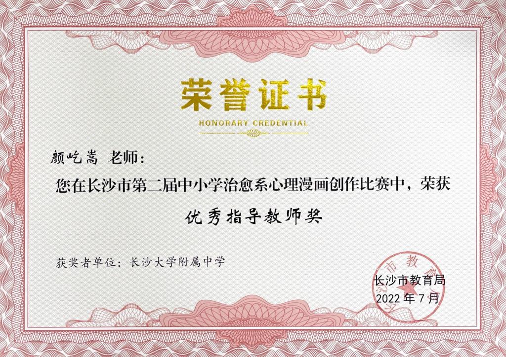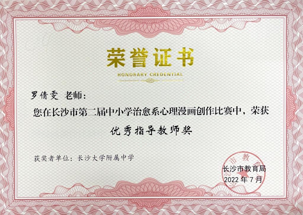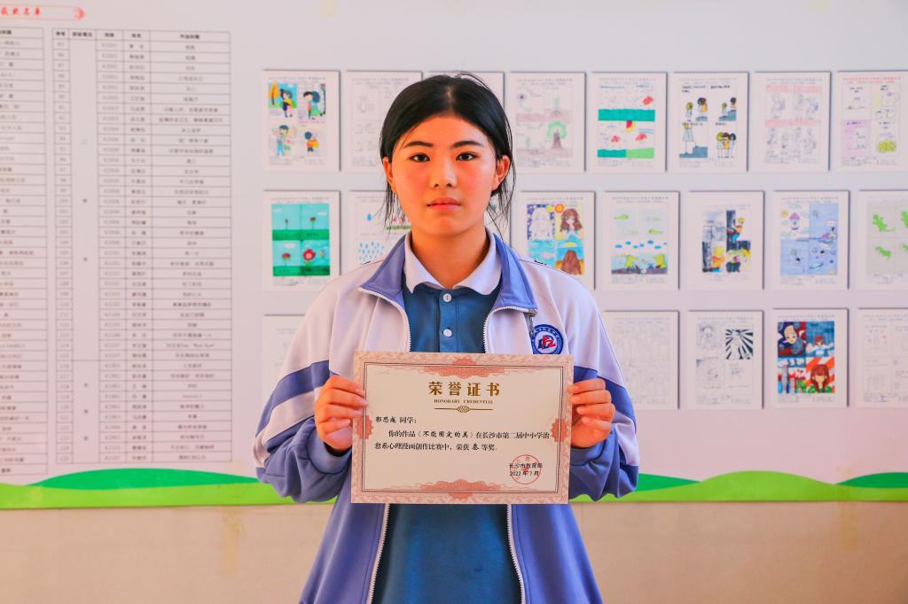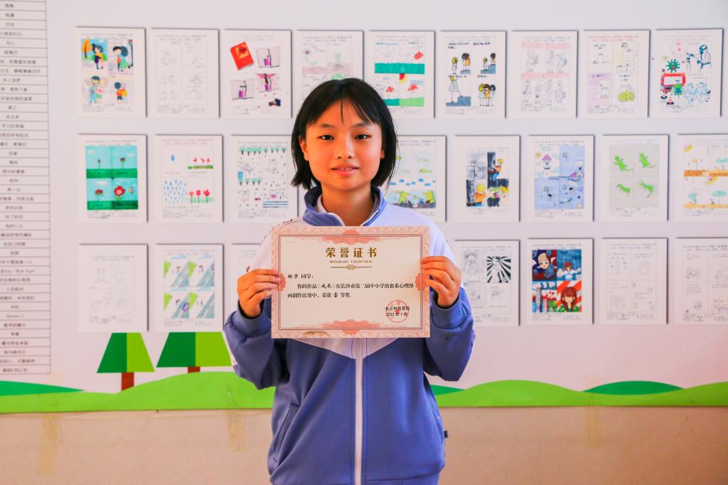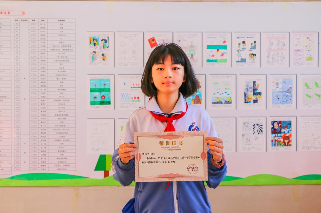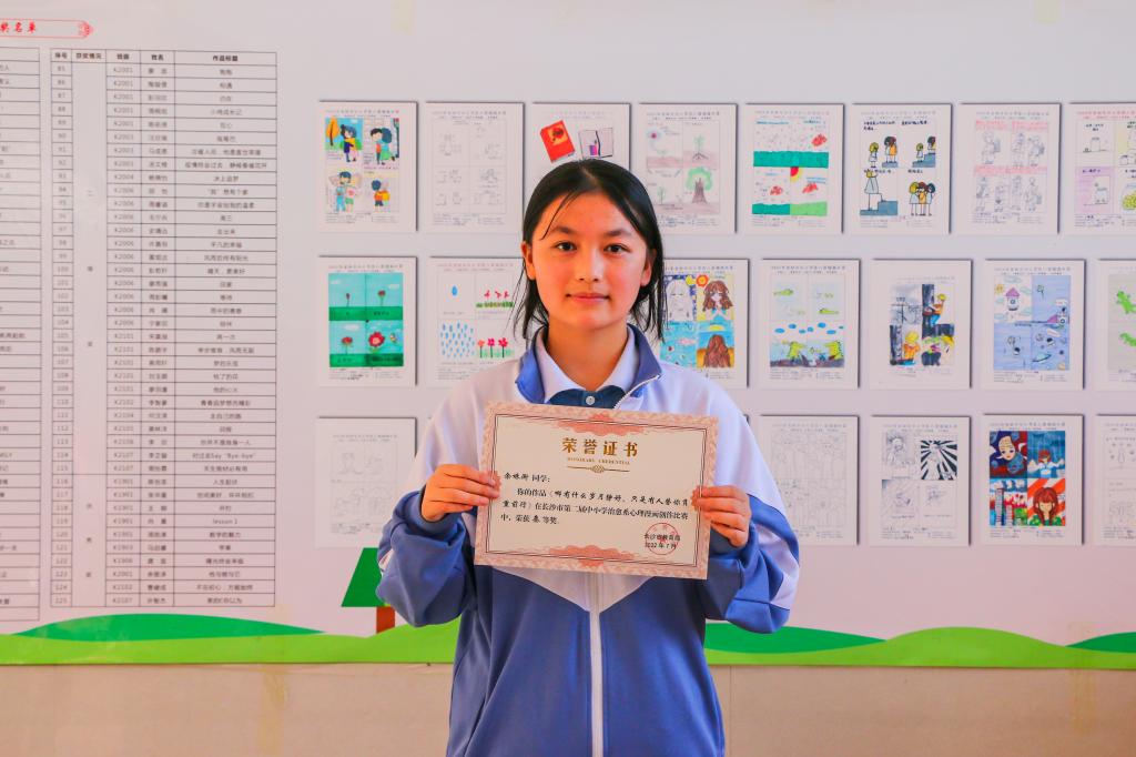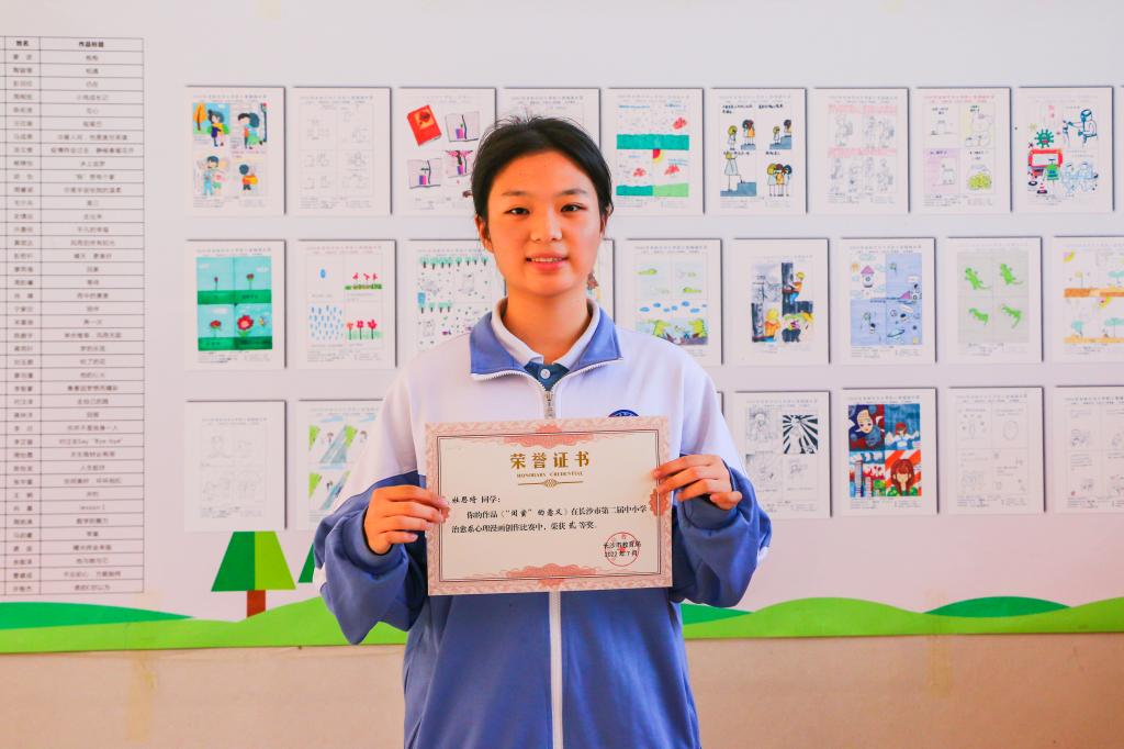 在长沙市第二届中小学治愈系心理漫画大赛中,我校共有19位学生作品从众多作品中脱颖而出,荣获佳绩。其中李子怡等5人荣获市级一等奖,杜思琦等7人荣获市级二等奖,郭静怡等7人荣获市级三等奖,颜屹嵩老师、罗倩雯老师荣获“优秀指导教师奖”。