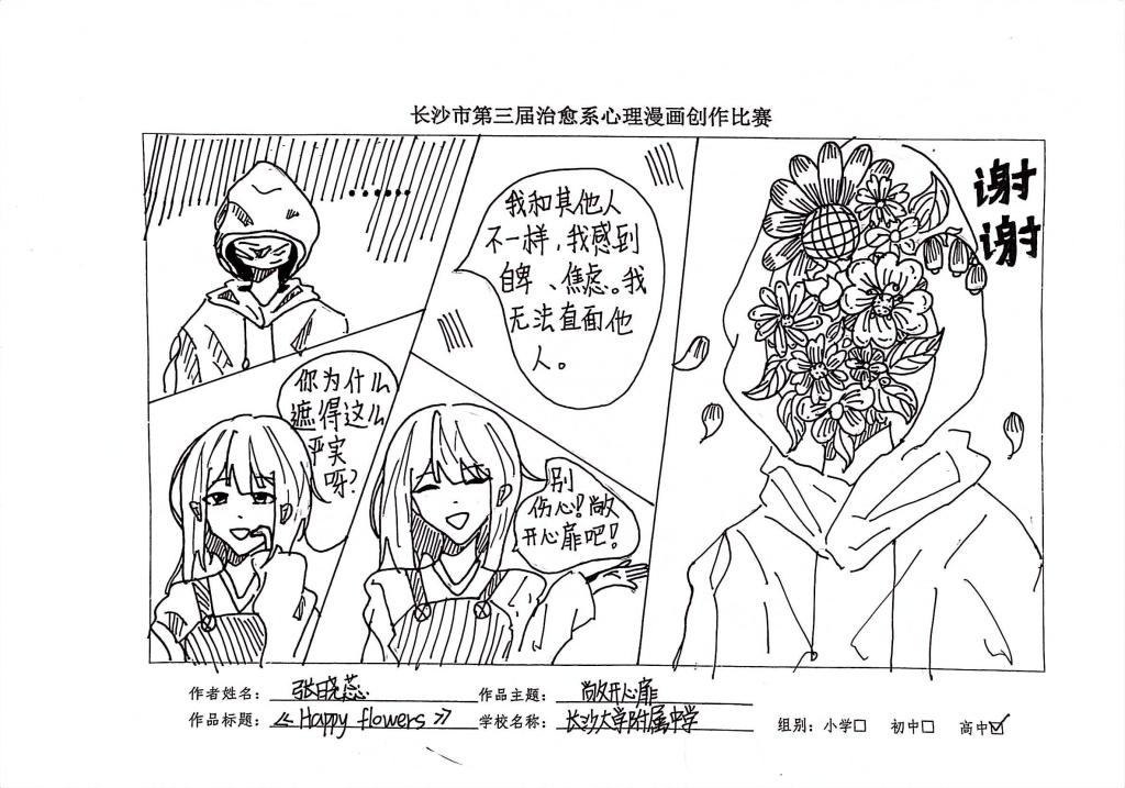 同学们以漫画的形式,从自我认识、情绪调节、人际交往、积极赋能、心理知识五个方面描绘出生活中的“小确幸”,表达了以积极心态应对成长中的挫折的良好愿景。每一幅作品后面都蕴含了一颗温暖治愈的心,我们一起来欣赏吧!