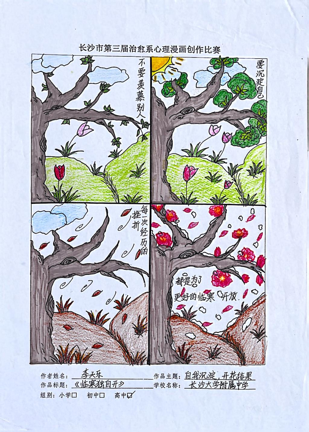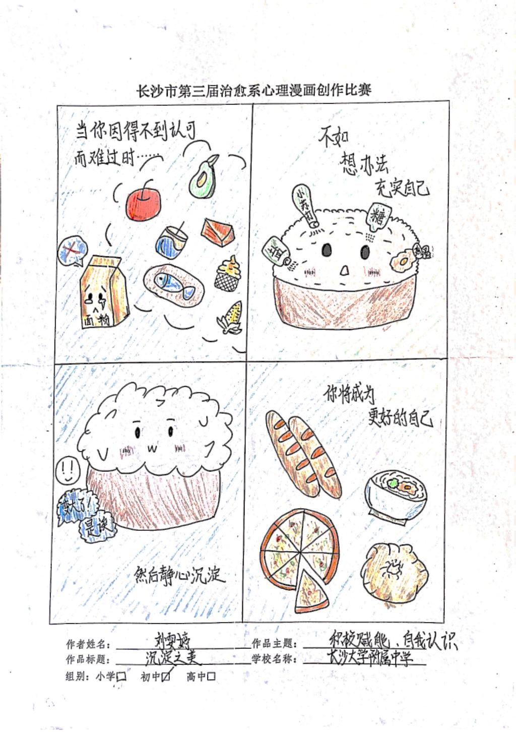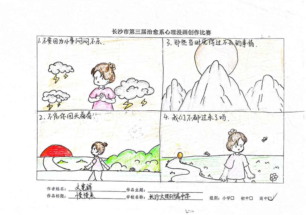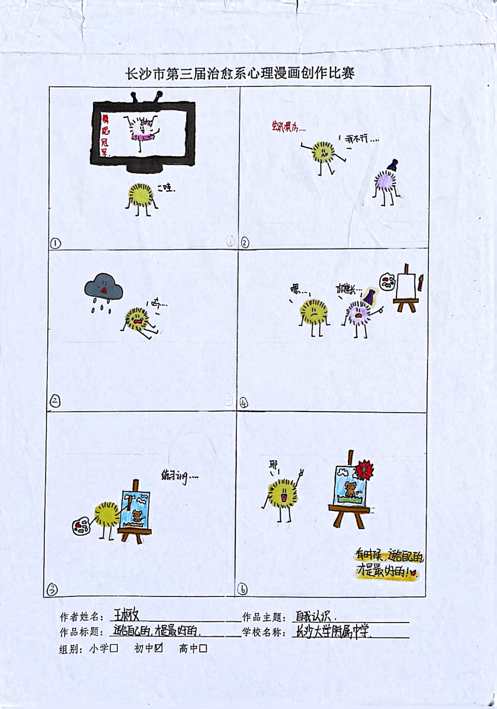 为引导学生正视心理状态,积极应对生活挫折,体会生活小确幸,3月份,我校教育处组织全校学生开展了以“绘出我心·治愈成长”为主题的治愈系心理漫画创作比赛活动。本次心理漫画大赛共收到作品266幅,根据作品内容和画面观感,经过严格评审,共评出一等奖49幅,二等奖73幅,三等奖39幅。
