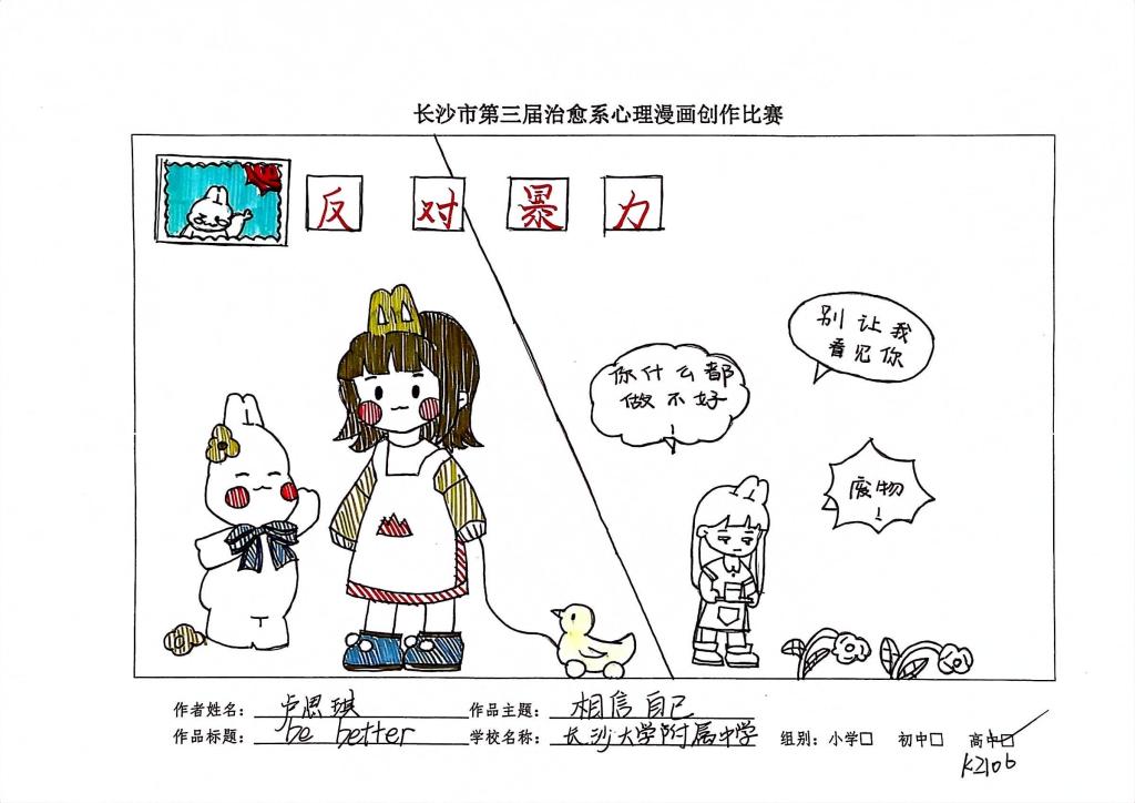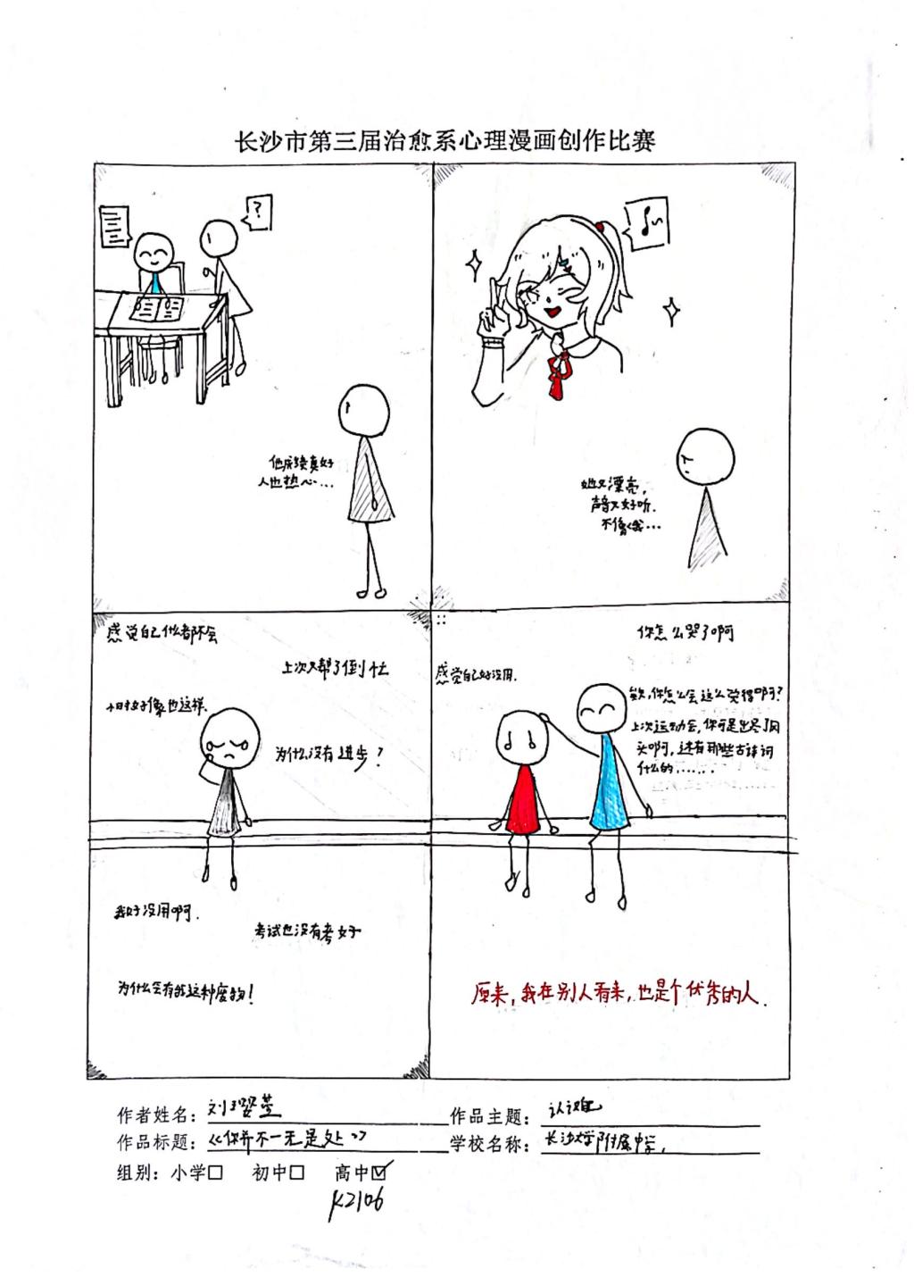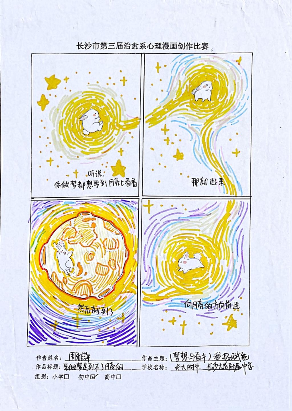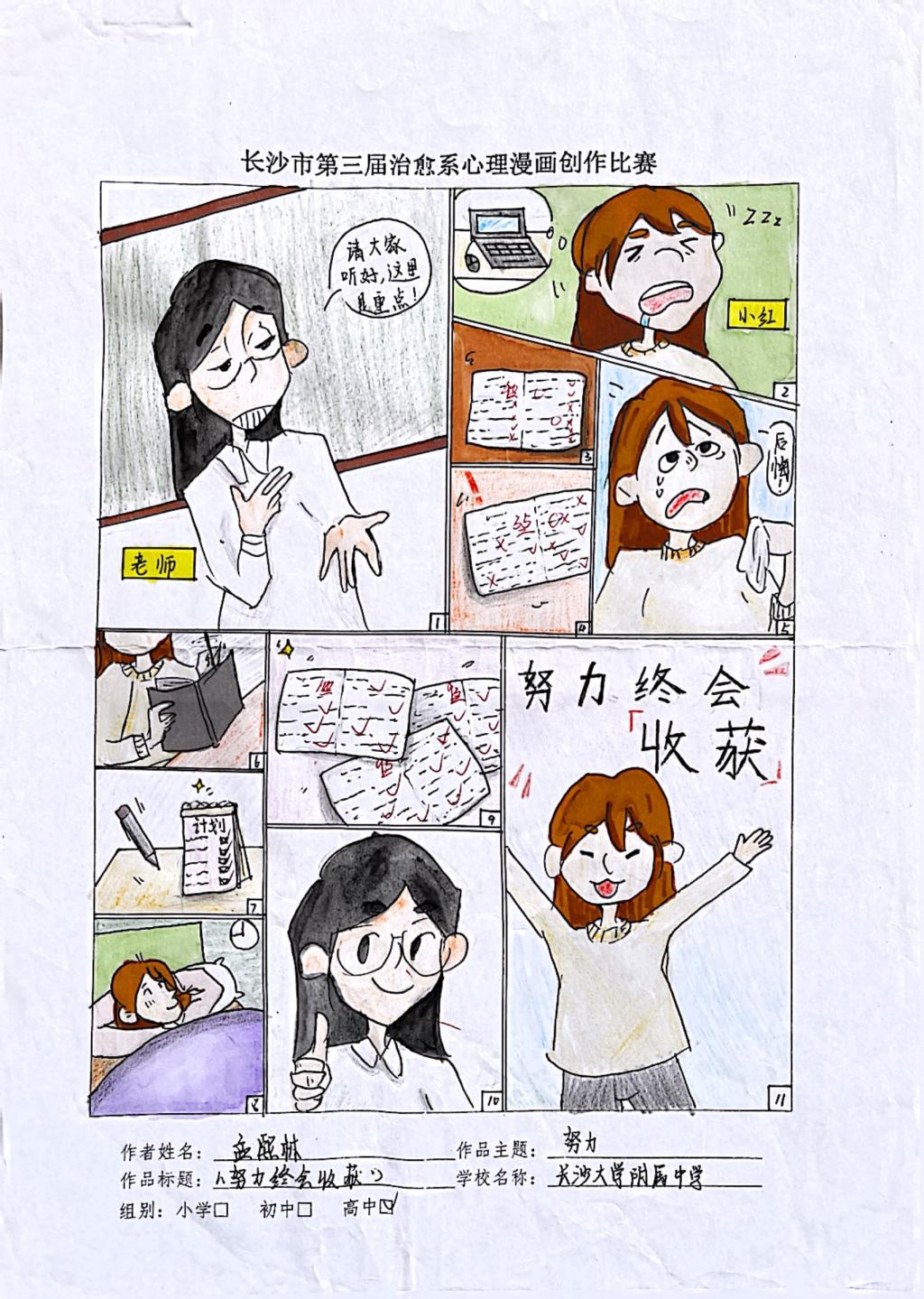 为引导学生正视心理状态,积极应对生活挫折,体会生活小确幸,3月份,我校教育处组织全校学生开展了以“绘出我心·治愈成长”为主题的治愈系心理漫画创作比赛活动。本次心理漫画大赛共收到作品266幅,根据作品内容和画面观感,经过严格评审,共评出一等奖49幅,二等奖73幅,三等奖39幅。