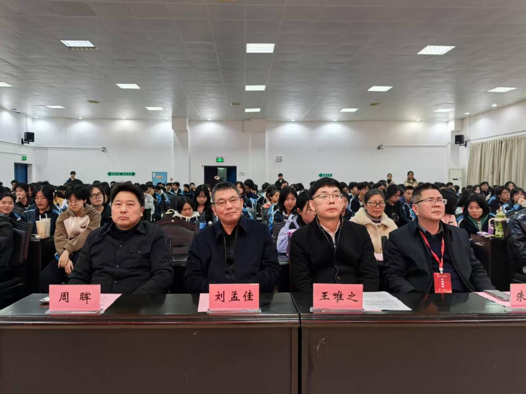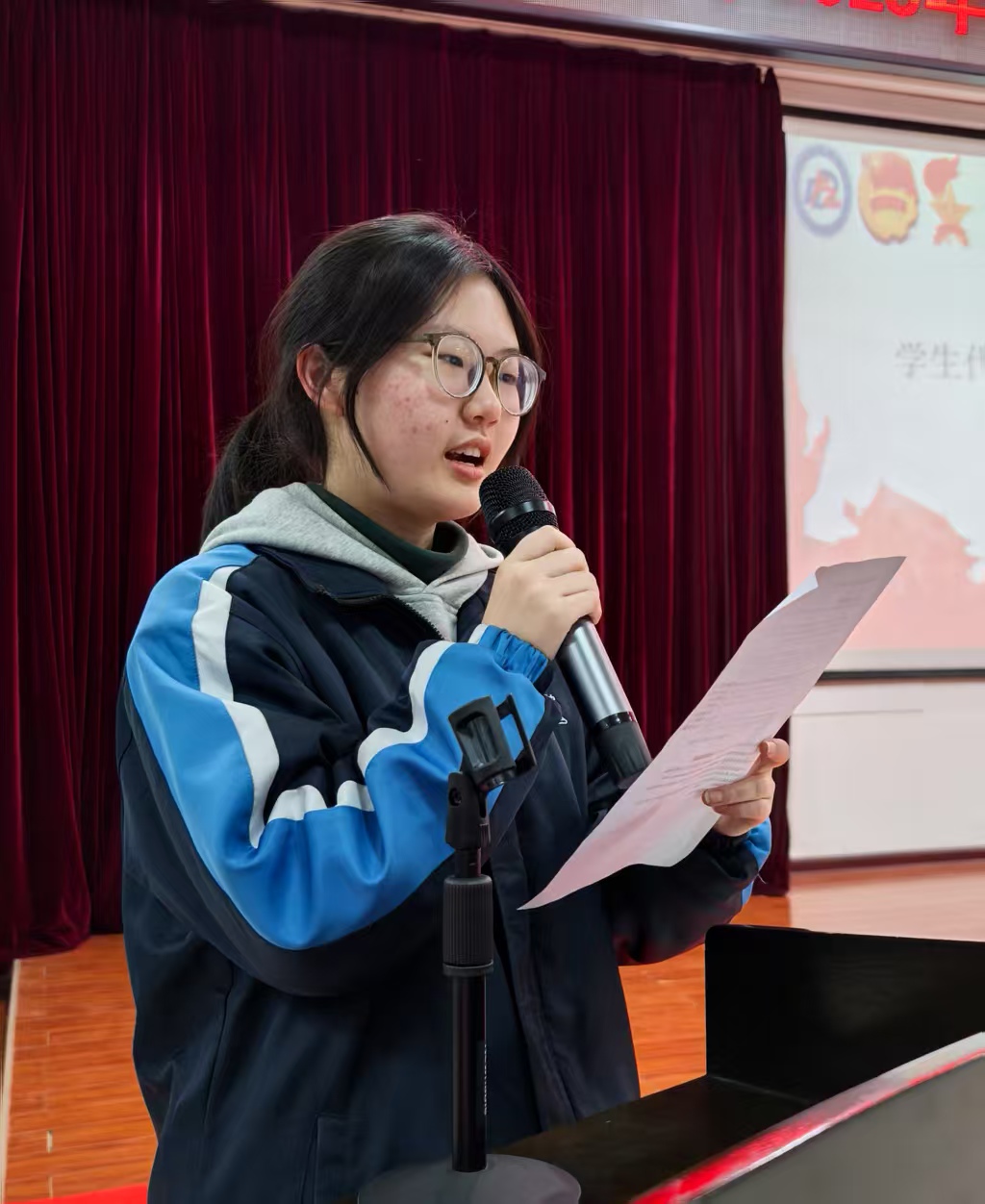 学生代表邱韵寒上台发言,分享了自己的学习方法与心路历程,激励大家在高三冲刺阶段坚持不懈、勇攀高峰。“考试是成长路上的指示灯,它照亮我们的不足。只要我们虚心总结,调整学习方法,下次一定能逆袭。”这番话语掷地有声,让同学们备受鼓舞,点燃心中对梦想的渴望。