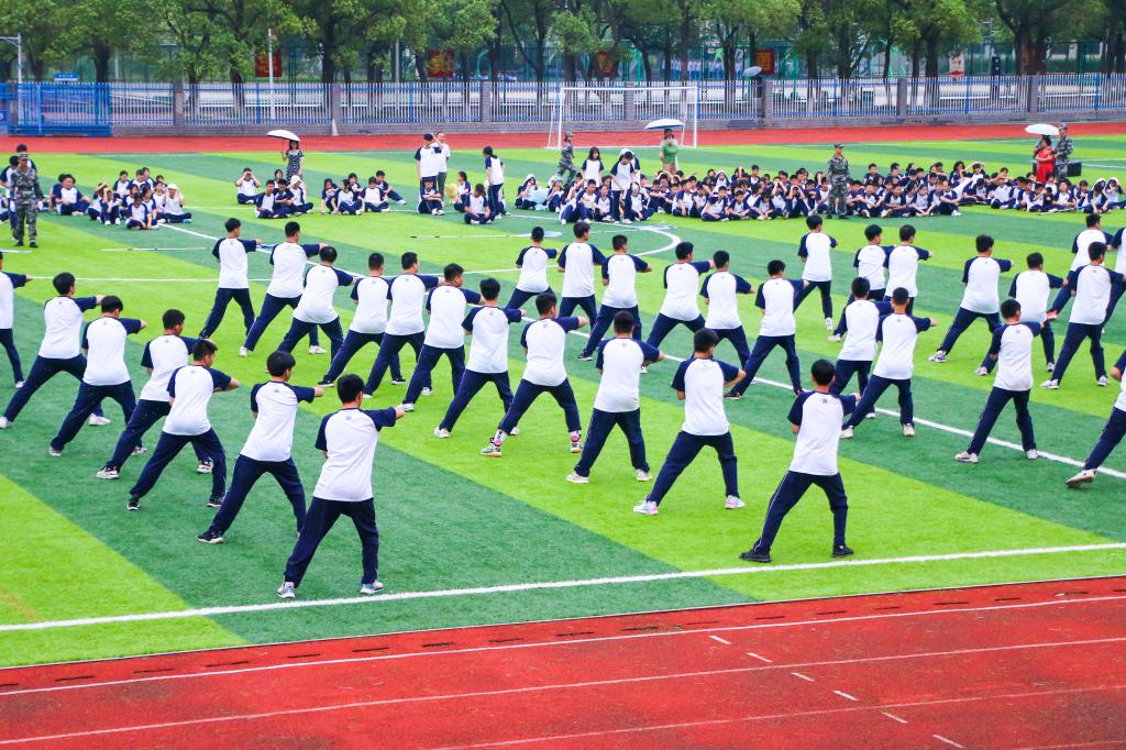 陆佳宾校长在发言中首先代表长大附中向关心支持军训工作的开福区武装部领导、长沙学院教官以及学校全体工作人员表示诚挚的感谢!向圆满完成军训任务的同学们表示热烈的祝贺!