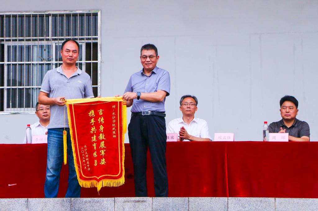 四、学校党委书记刘孟佳代表学校向承训单位赠送锦旗