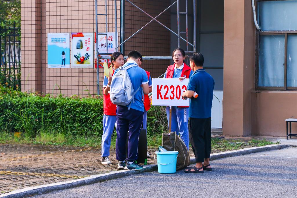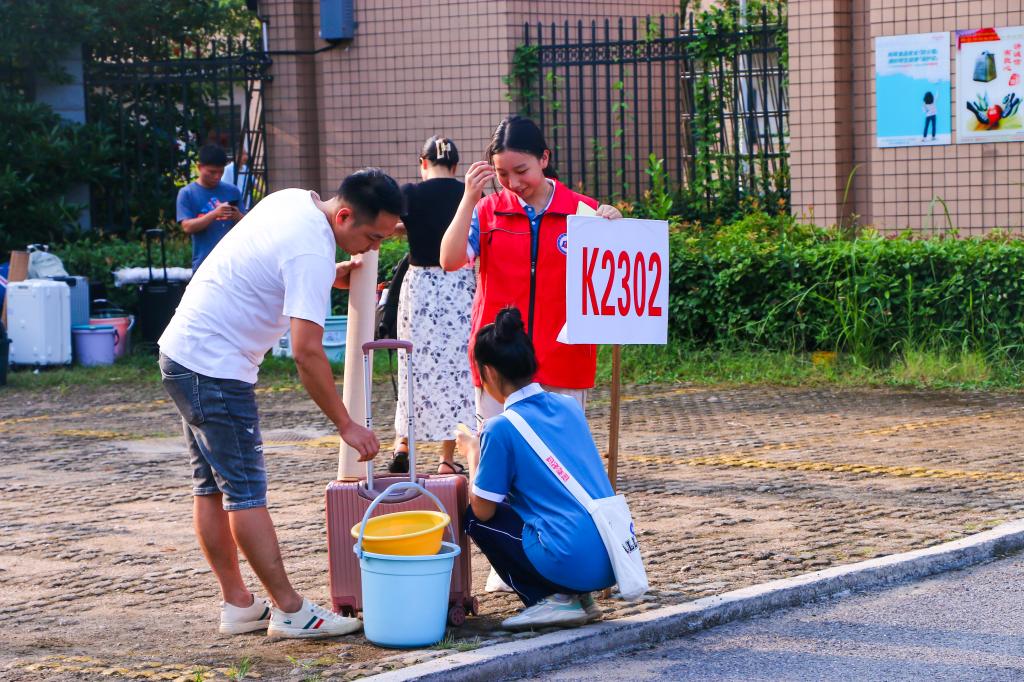 1、在学校学生志愿者的引导帮助下,新生们及时找到自己的班级,并将行李有序放置到指定位置。