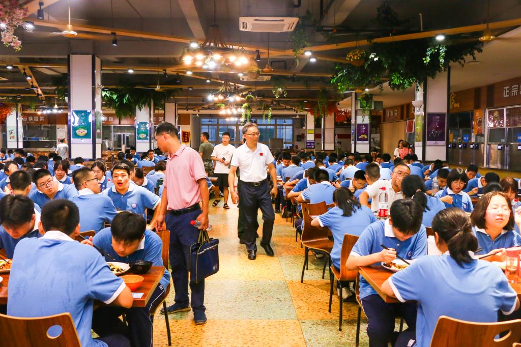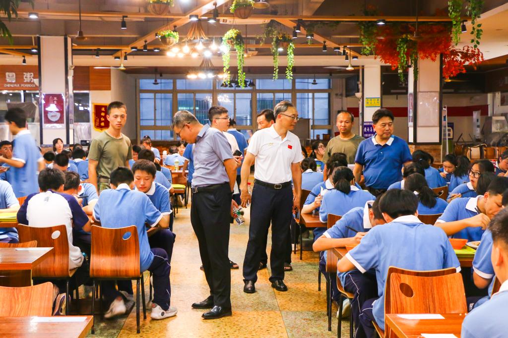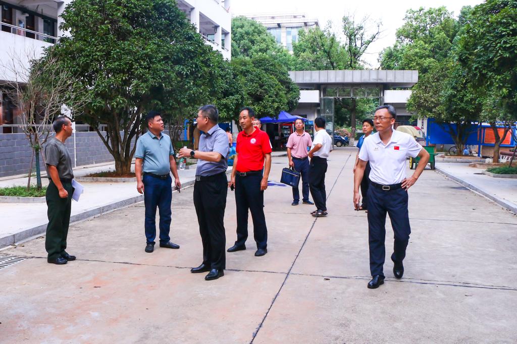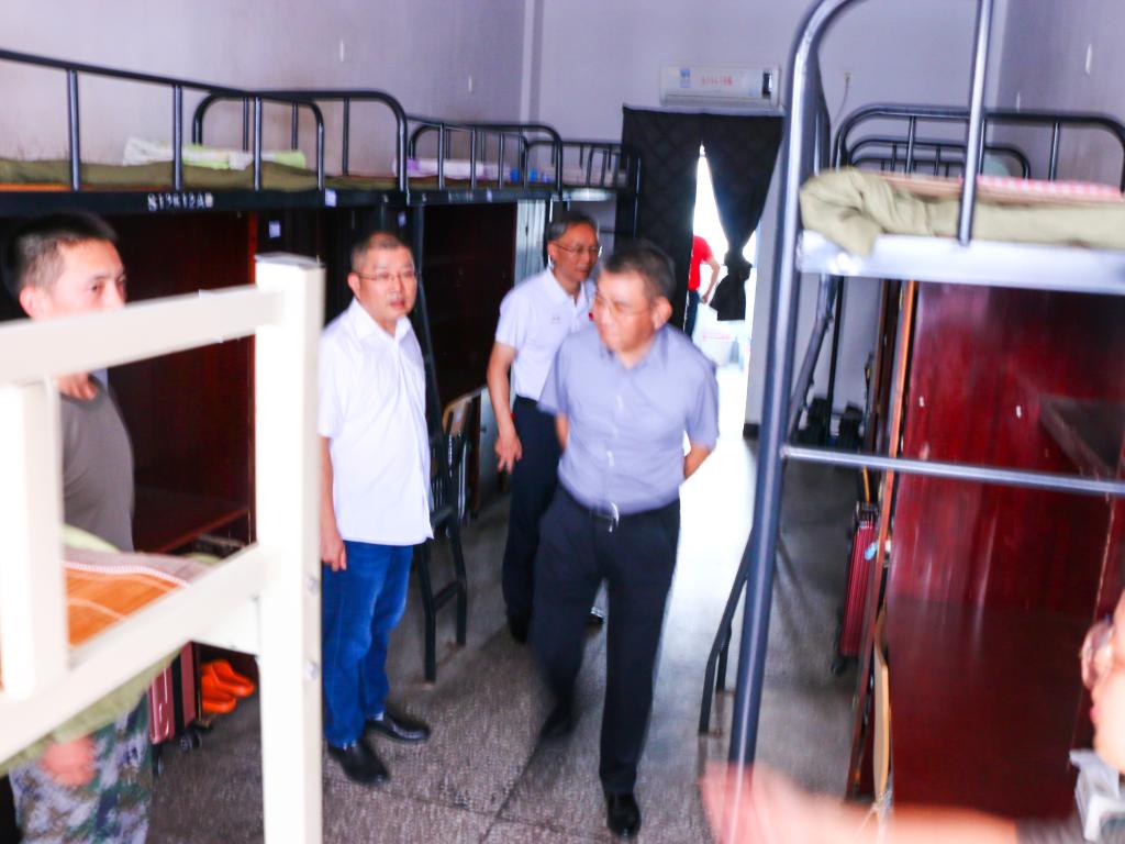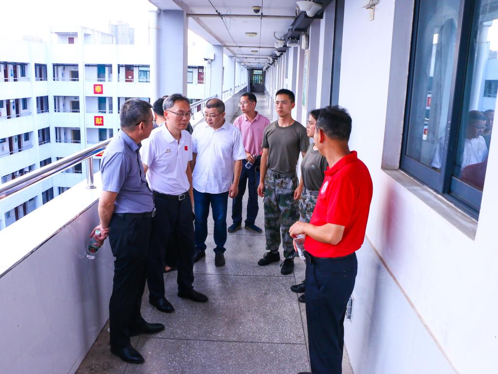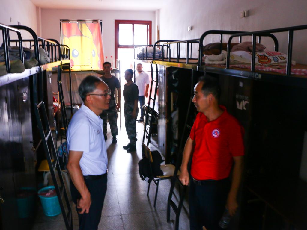 学校领导来到军训营地,了解新生军训的住宿和就餐条件。