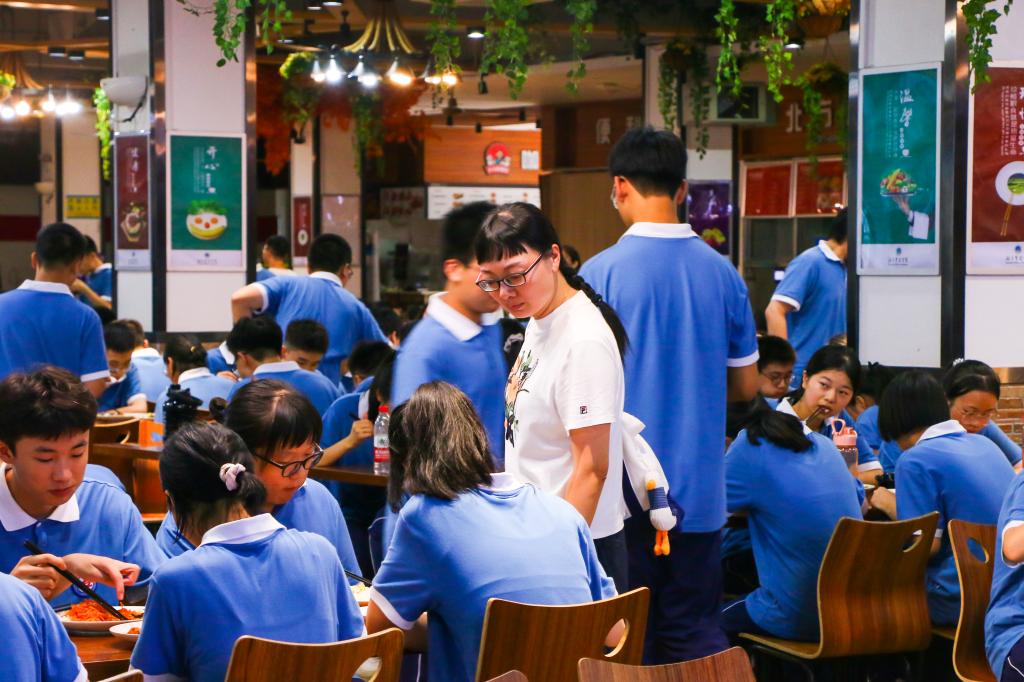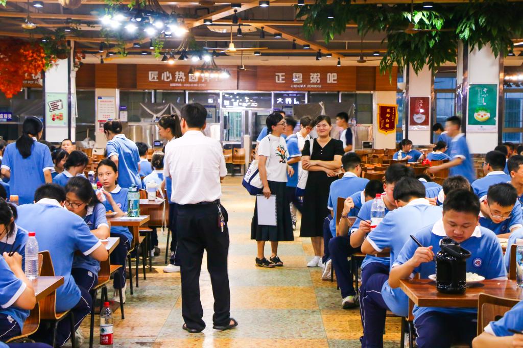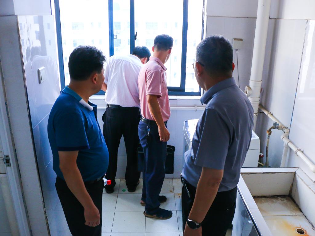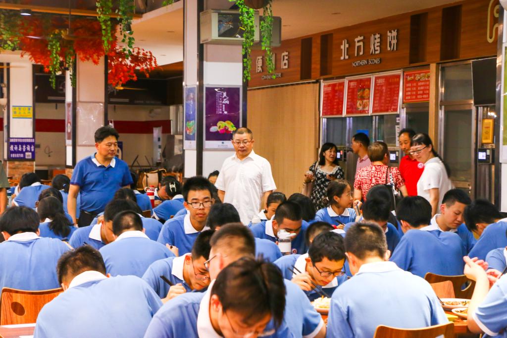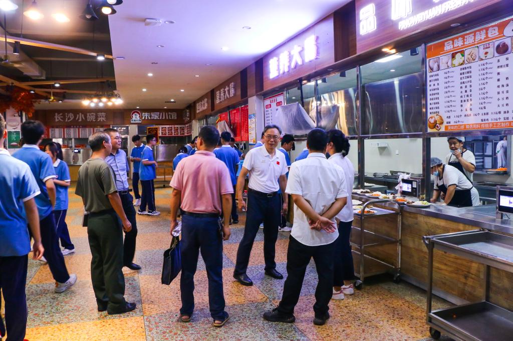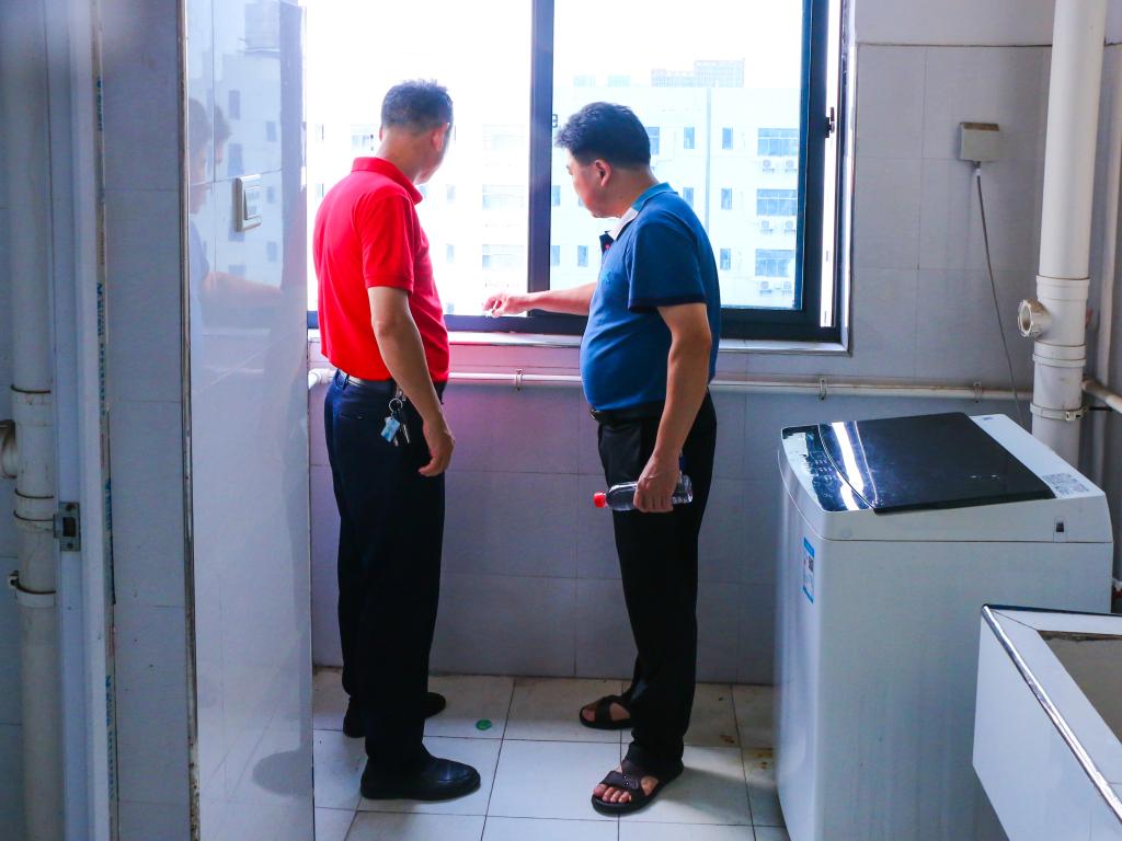 学校领导来到军训营地,了解新生军训的住宿和就餐条件。