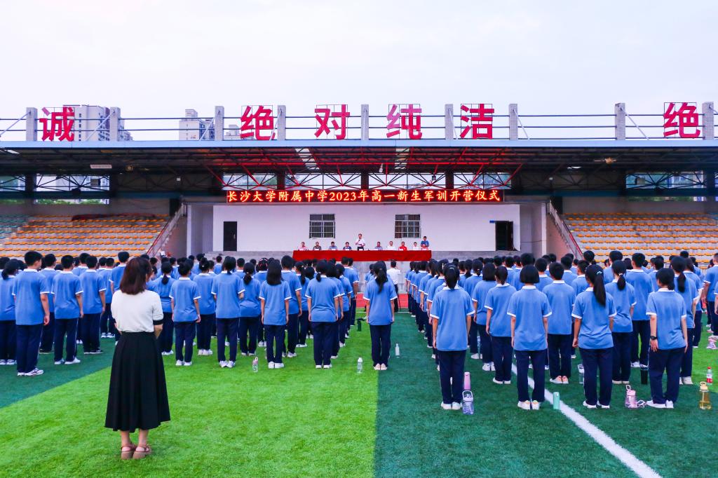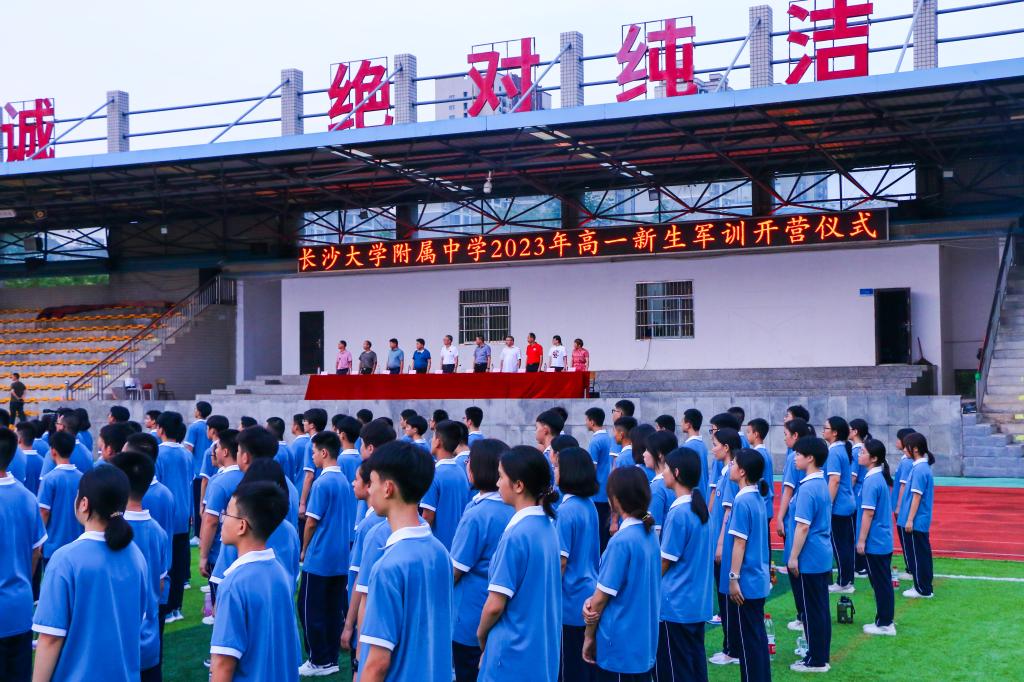 8月15日晚7点,长沙大学附属中学2023级390名新生集结在军训营地,隆重举行2023级高一新生军训开营仪式,开启高中新篇章。