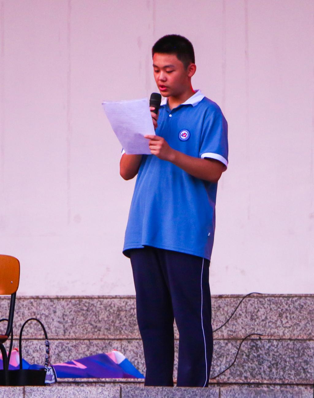 贺梓扬同学(K2302)在发言中表达了自己步入人生新起点的高兴、兴奋和充满期待的心情,并阐述了自己对军训的认识:军训不仅可以增强我们的体质,更能磨砺我们的心智,培养我们坚忍不拔的意志,团结互助的精神,帮助我们身心健康成长,为高中生活甚至是以后的人生打好坚实的基础。