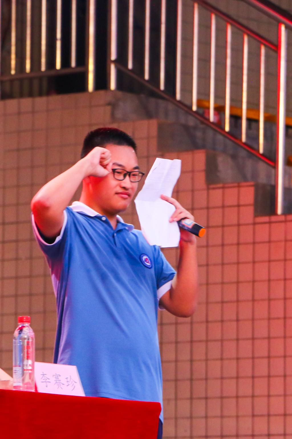 张铭翔同学(K2301)站在主席台上,紧握右拳,带领全体同学庄严宣誓: