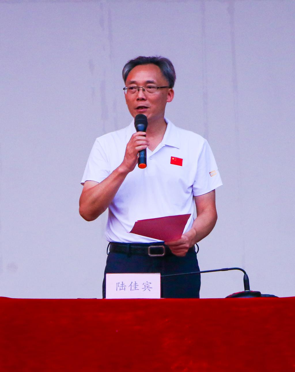 陆佳宾校长首先代表全校师生向承担本次军训任务的全体教官表示崇高的敬意!向辛勤工作的老师们表示衷心的感谢!向全体高一新生表示热烈的欢迎!