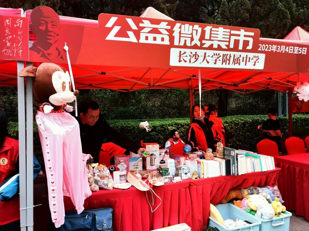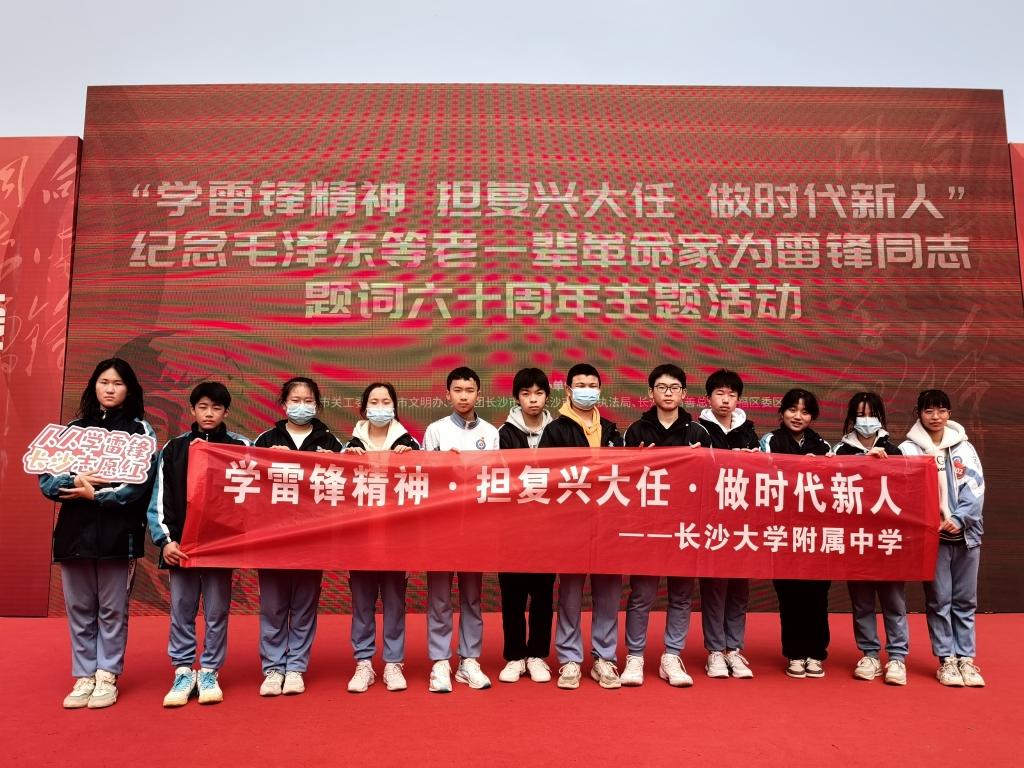 3月4日上午,由长沙市关工委、市文明办、团长沙市委、市城管局、市慈善总会、开福区委区政府主办,长沙市星城学雷锋志愿服务发展中心等单位联合承办的“学雷锋精神·担复兴大任·做时代新人”——纪念毛泽东等老一辈革命家向雷锋题词六十周年主题活动在湖南烈士公园举行。作为“雷锋少年”项目示范学校,我校团委积极组织了初一和初二年级的雷锋少年们参加了此次爱心义卖和徒步打卡活动。