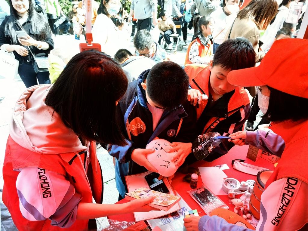 刚开始大家还有些生涩,不知怎样把商品推销出去。面对顾客“能否便宜点”的询问,也很难做出决定。后面游客渐多,各个摊位开始喧闹起来,义卖员们面对激烈的竞争,顾不上害羞,开始各显神通。有些义卖员索性抱着玩偶、泡泡棒等沿街流动售卖。