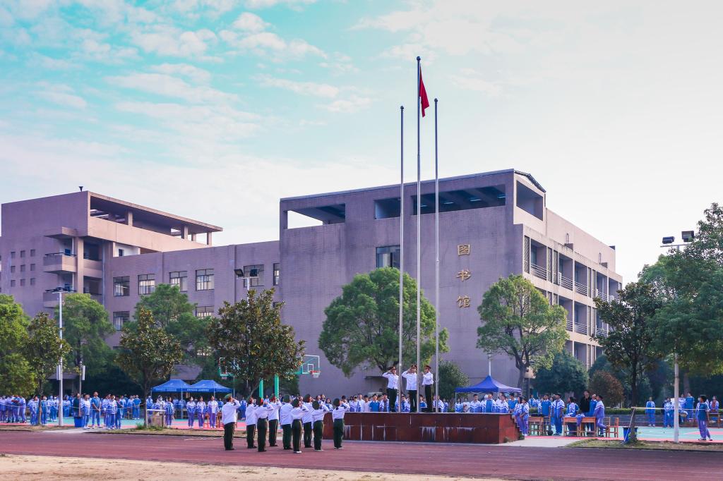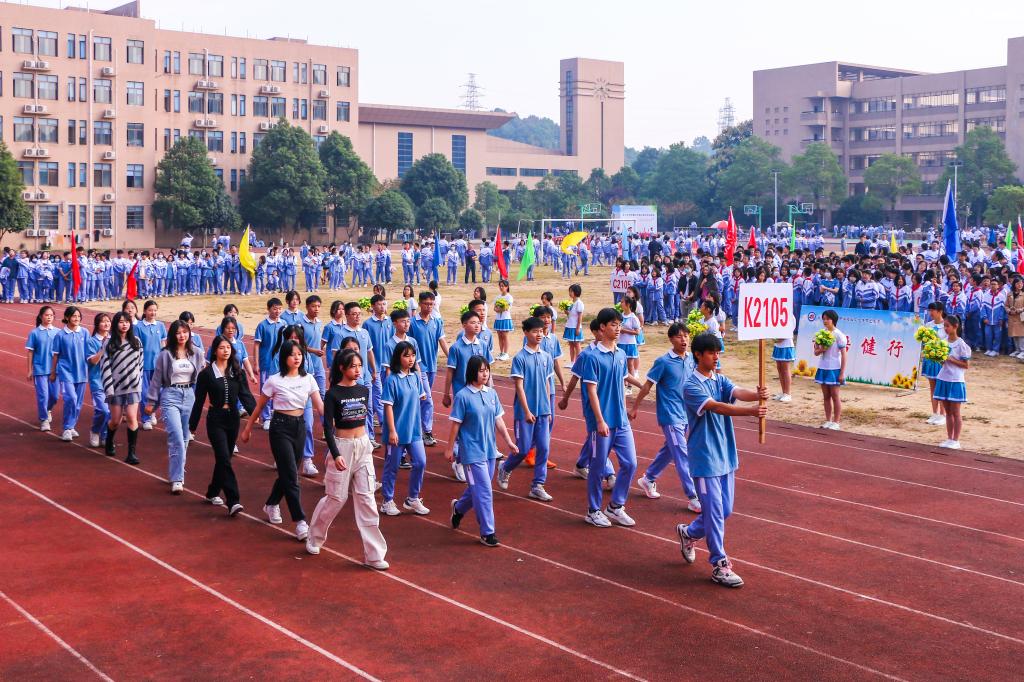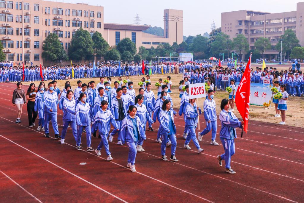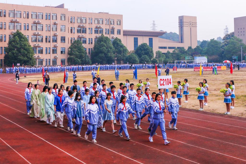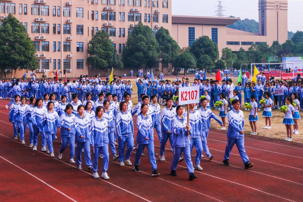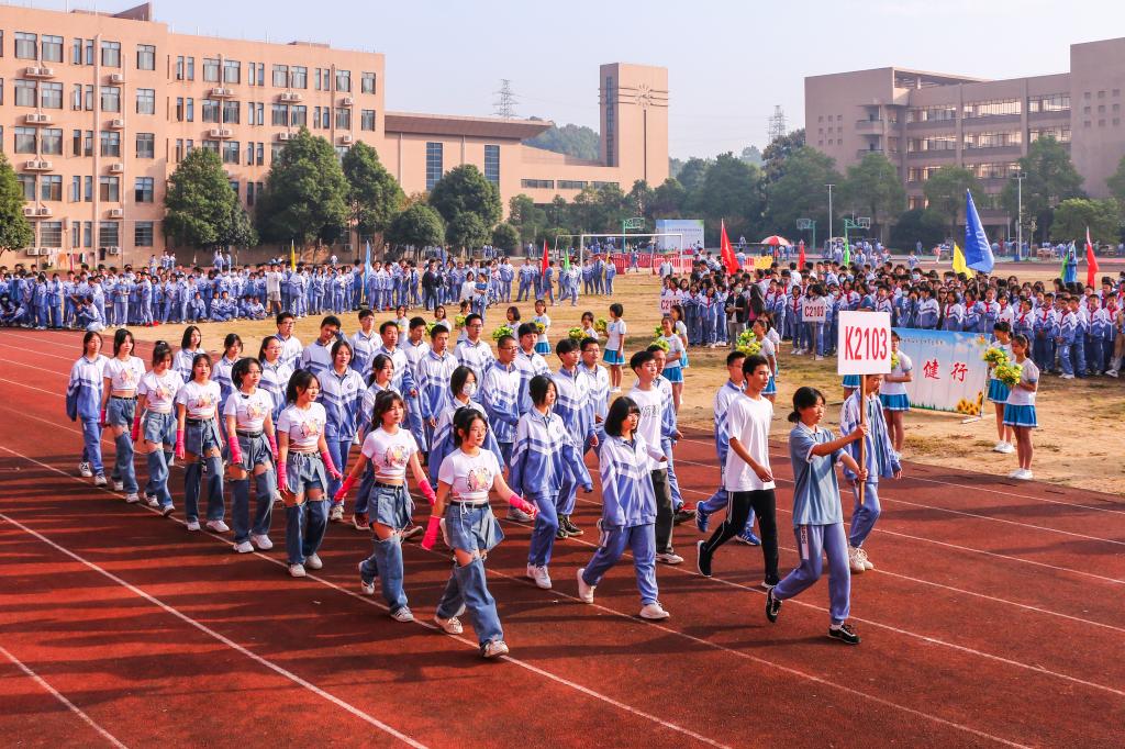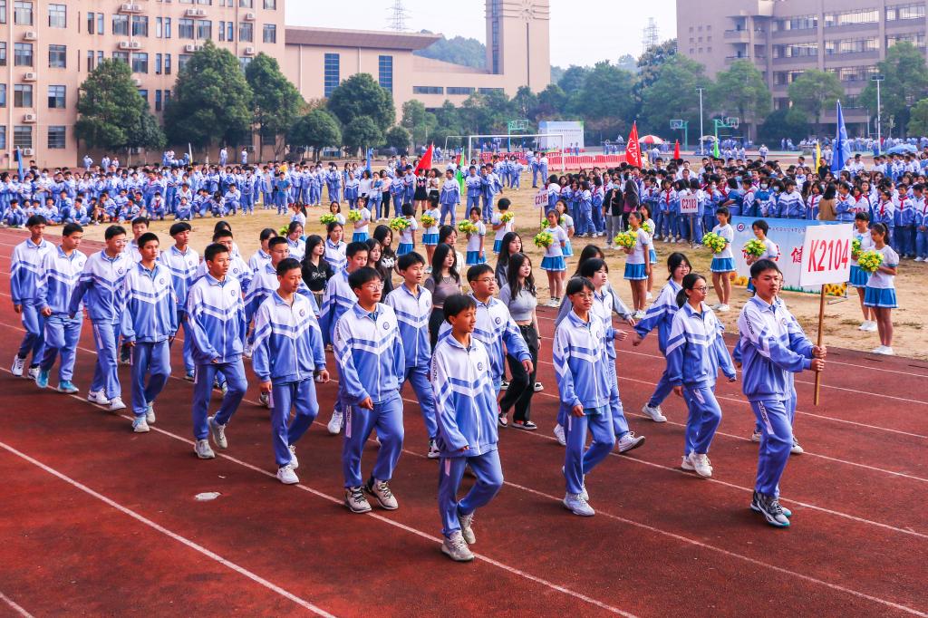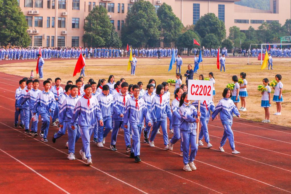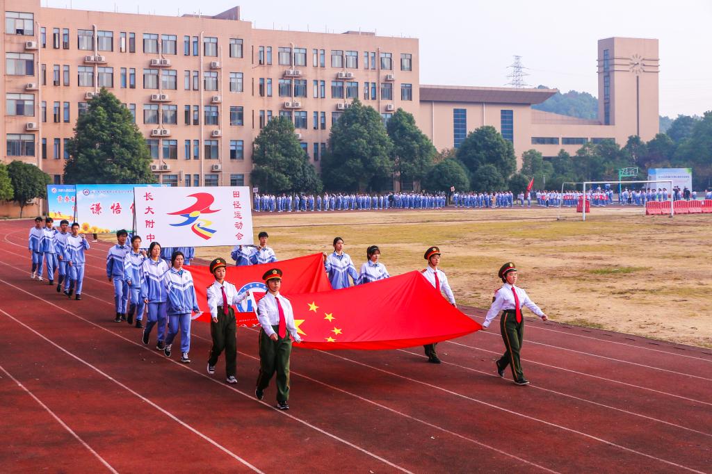 伴随着雄壮的进行曲,国旗方队、鲜花方队、彩旗方队及所有参赛班级方队依次走过主席台,进入指定位置。