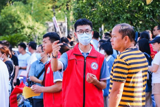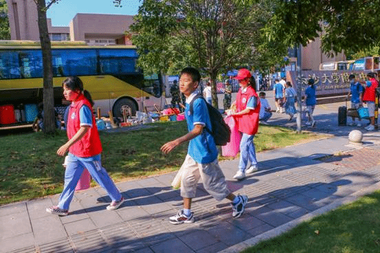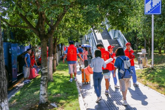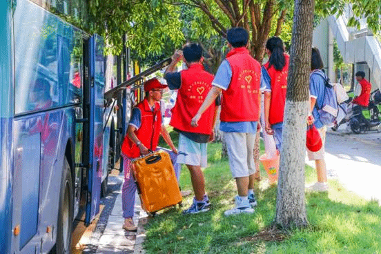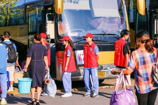 是的,他们就是我们学校的学生志愿者,每有重大活动,他们就活跃在活动现场。8月19日清晨,高年级学长志愿者们穿着醒目的红马甲,戴着小红帽,早早来到学校门口,按照事先的任务分配,为前来报到的高一新生及家长提供各项服务:指导报到流程,引导路线,搬运行李,回答家长咨询……