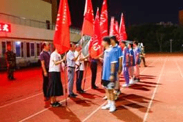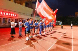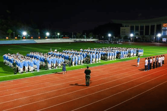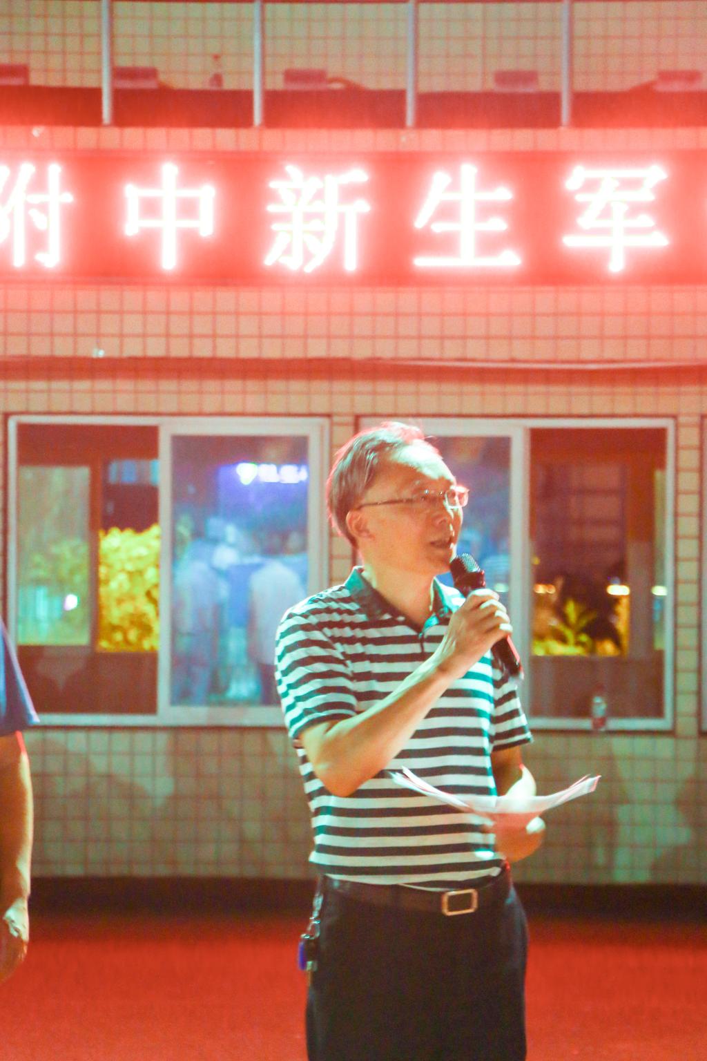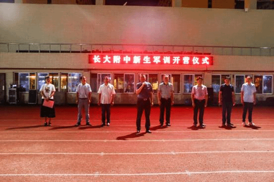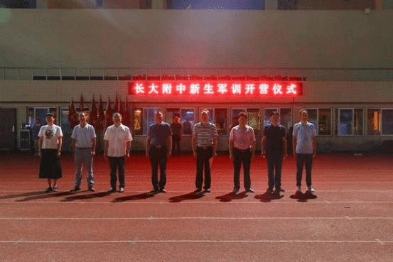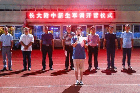 2022年8月19日傍晚, 长大附中2022级高一新生军训开营仪式在湖南外贸职业学院举行。校长陆佳宾、党委书记刘孟佳、副校长周晖、副校长刘新文、纪委书记李继芳、教育处主任刘志兵、保卫处主任兼教育处副主任贺孟辉、团委书记兼教育处副主任刘晓慧、高一年级组长黄伟宏、湖南体育职院士官学院总负责人胡永辉与2022级高一全体班主任、学生参加了开营仪式。
