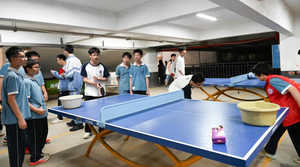 乒乓球旋转着飞向目标区