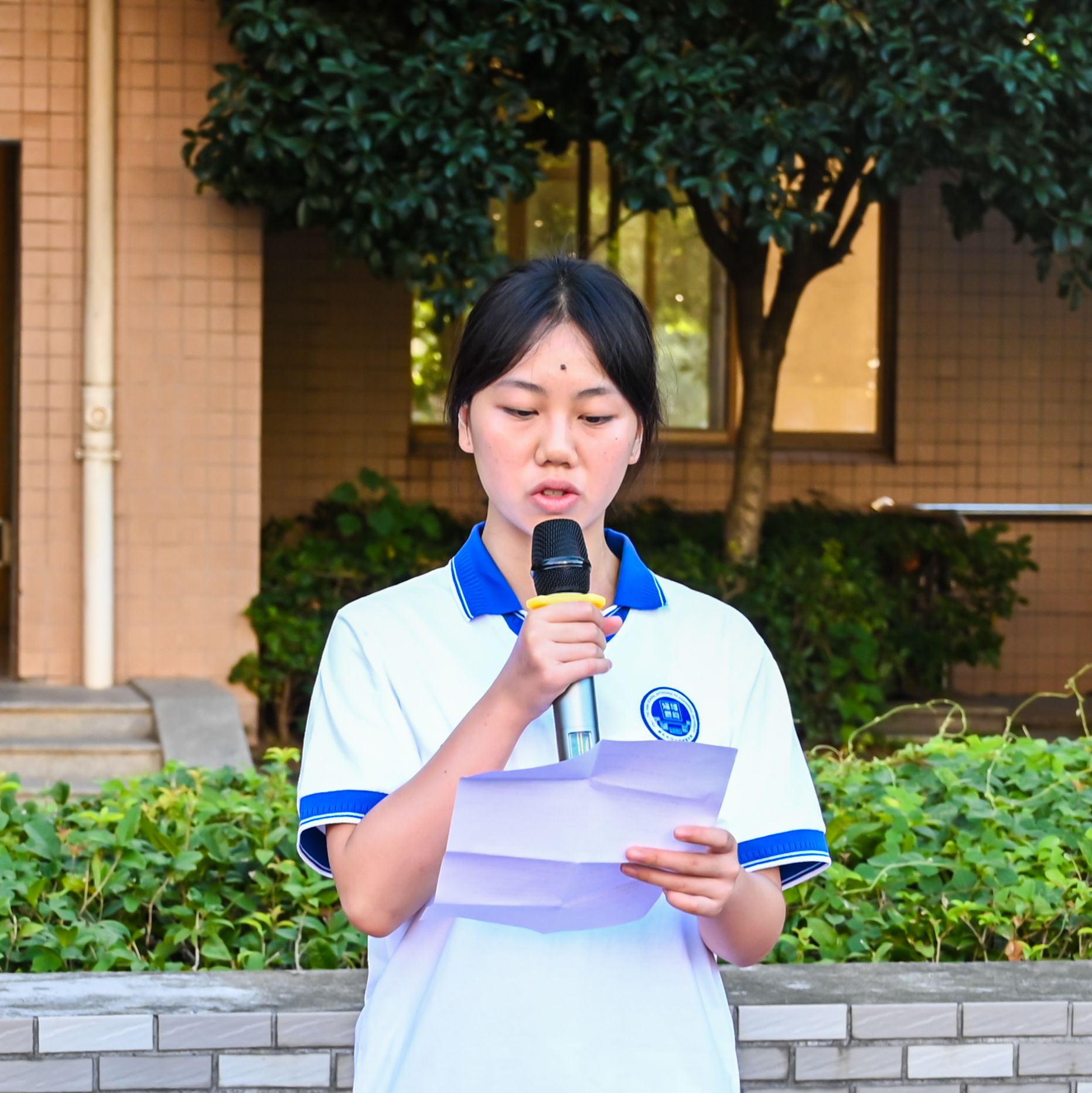 来自K2501班的郭斯琪同学代表全体参训学生宣誓,她郑重承诺:我们将以最饱满的热情投入训练,发扬吃苦耐劳的精神,严格遵守纪律与作息,严格遵守纪律与作息,在训练中团结互助、共促共进,认真学习国防知识,不断增强爱国情怀,以优异的训练成绩为此次军训交出圆满答卷!