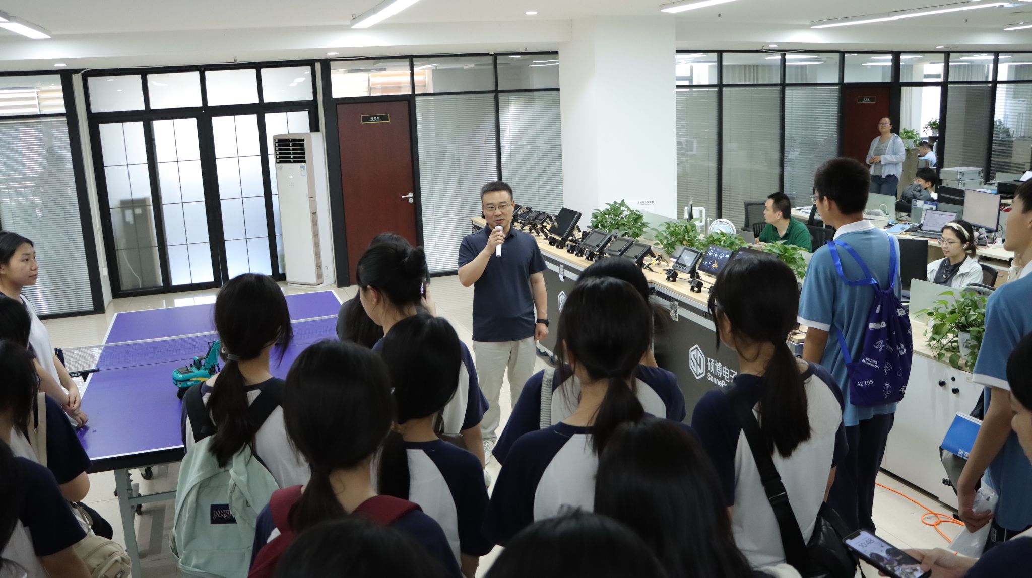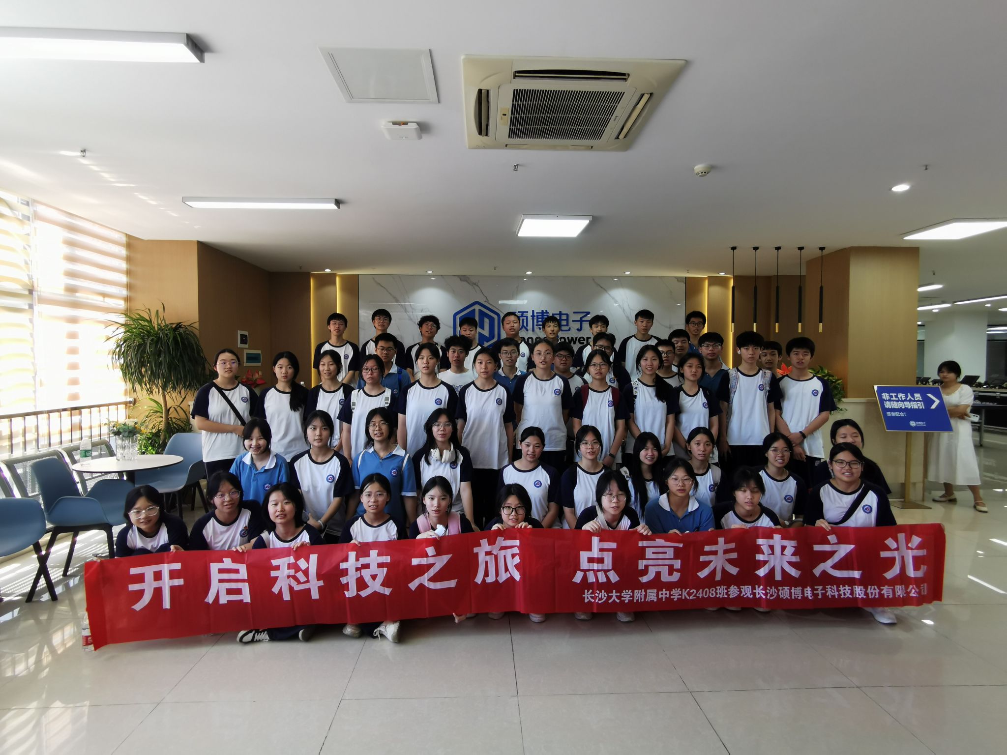 暑假期间,长沙大学附属中学K2408班的同学们带着科技探索的热情,走进长沙硕博电子科技股份有限公司,开启了一段沉浸式的科技研学之旅。在企业实地参访中,同学们零距离感受了产业前沿技术的创新魅力。