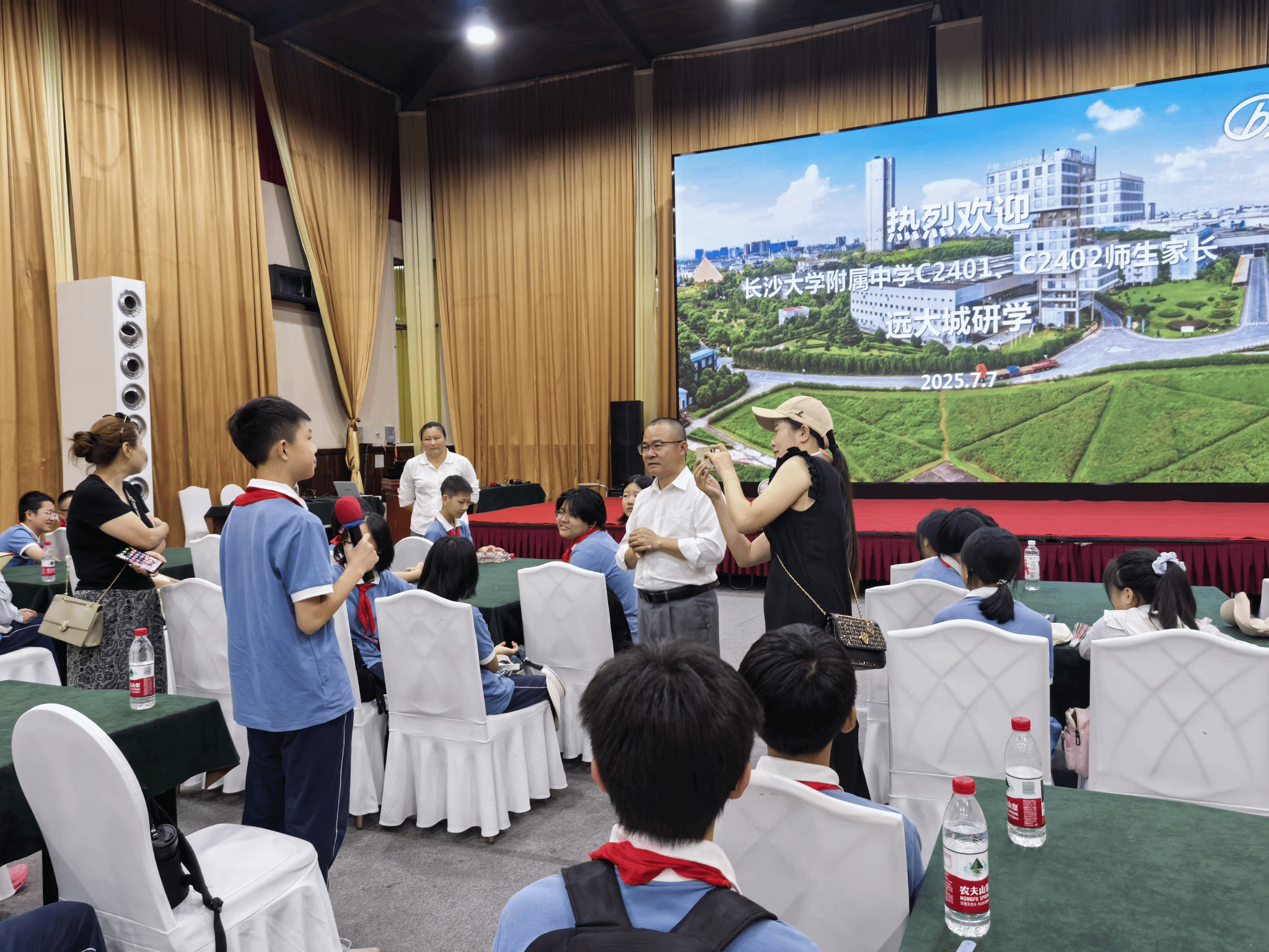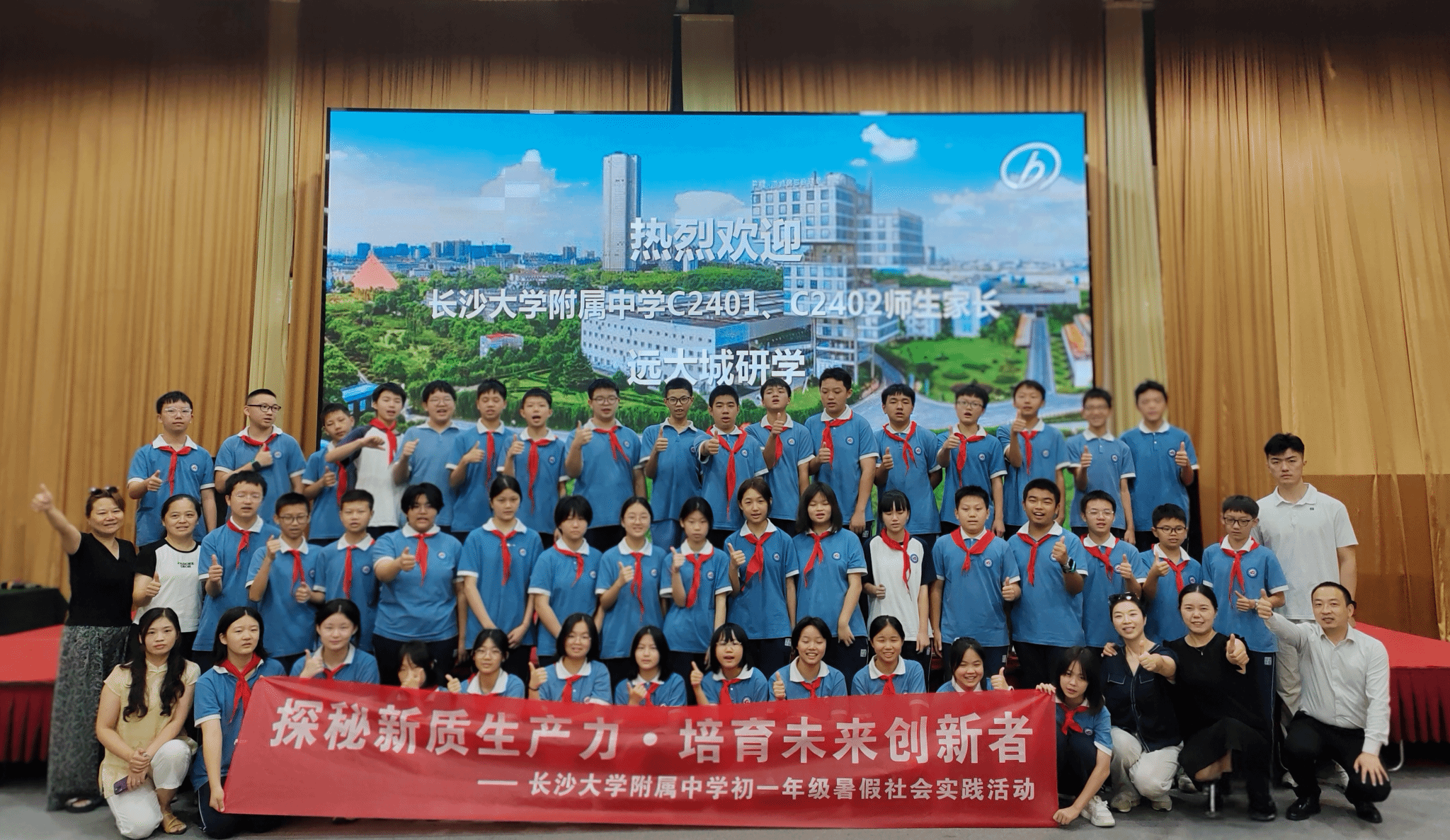 盛夏七月,长沙大学附属中学初一年级组织了一场暑假社会实践活动——“探秘新质生产力,培养未来创新者”。本次活动在长沙远大城研学基地举行,初一年级老师和家长、学生共同参与。通过实地参观、讲座学习和互动体验,深入了解科技创新与新质生产力的发展,激发学生的创新思维和科技兴趣。