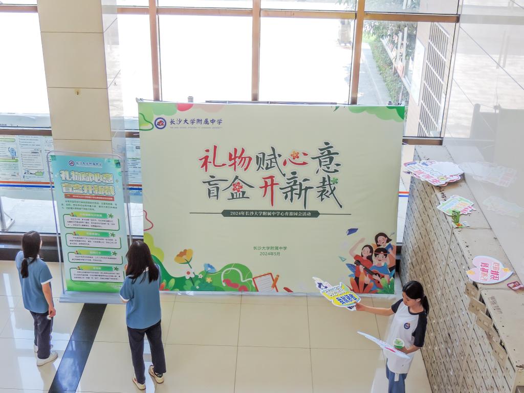为普及心理健康知识,培养积极乐观向上的心理品质,促进师生与生生交流,营造良好的心理健康教育校园氛围,5月24日中午,长沙大学附属中学组织开展了“礼物赋心意 盲盒开新裁”心育游园会活动,在心理教师的指导下,各班心理委员带领同学们有序参与。