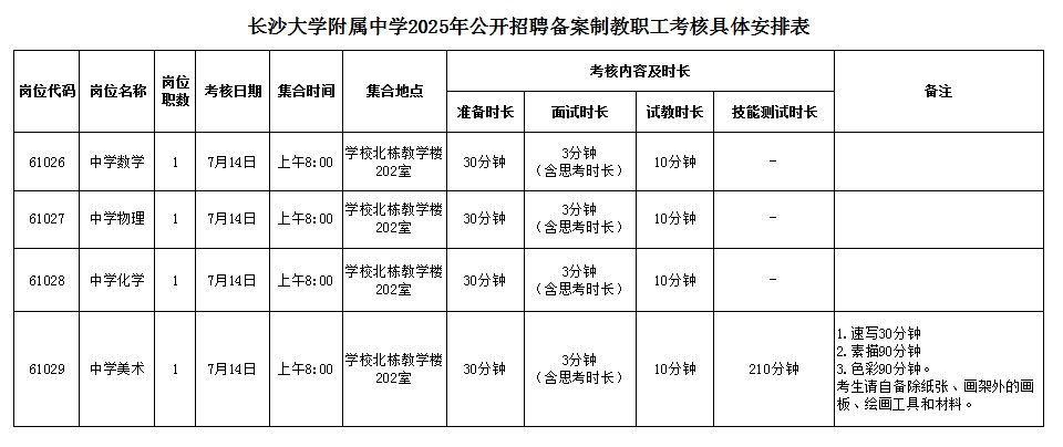 附:长沙大学附属中学2025年公开招聘备案制教职工考核具体安排表