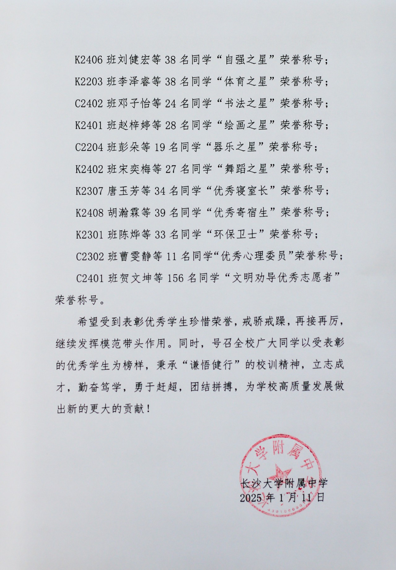 为表彰本学期表现优异的同学,副校长刘新文宣读表彰决定。这些同学在学习、品德、社会实践等方面表现突出,成为了全校师生学习的榜样。他们的优异成绩和先进事迹,激励着每一位同学在新学期中奋发向上,努力拼搏,争取更大的进步。