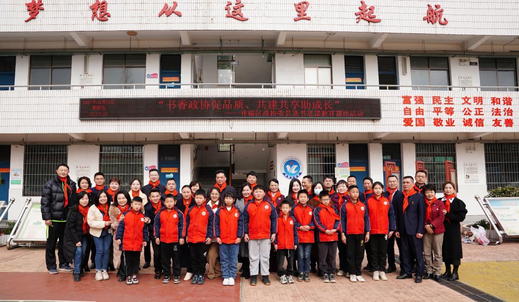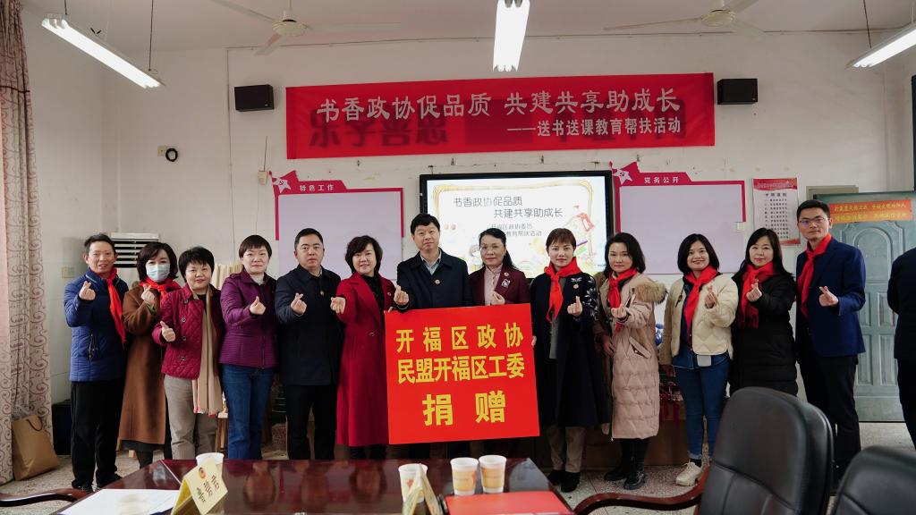 2月24日上午,长沙市开福区政协携手民盟开福区工委政协委员、盟员一同走进开福区向阳小学,开展送书送课教育共建活动。区政协党组书记、主席蔡冰等区政协领导,区教育局、民盟开福区工委相关单位负责人及民盟长大附中支部盟员覃美云老师参加了本次活动。