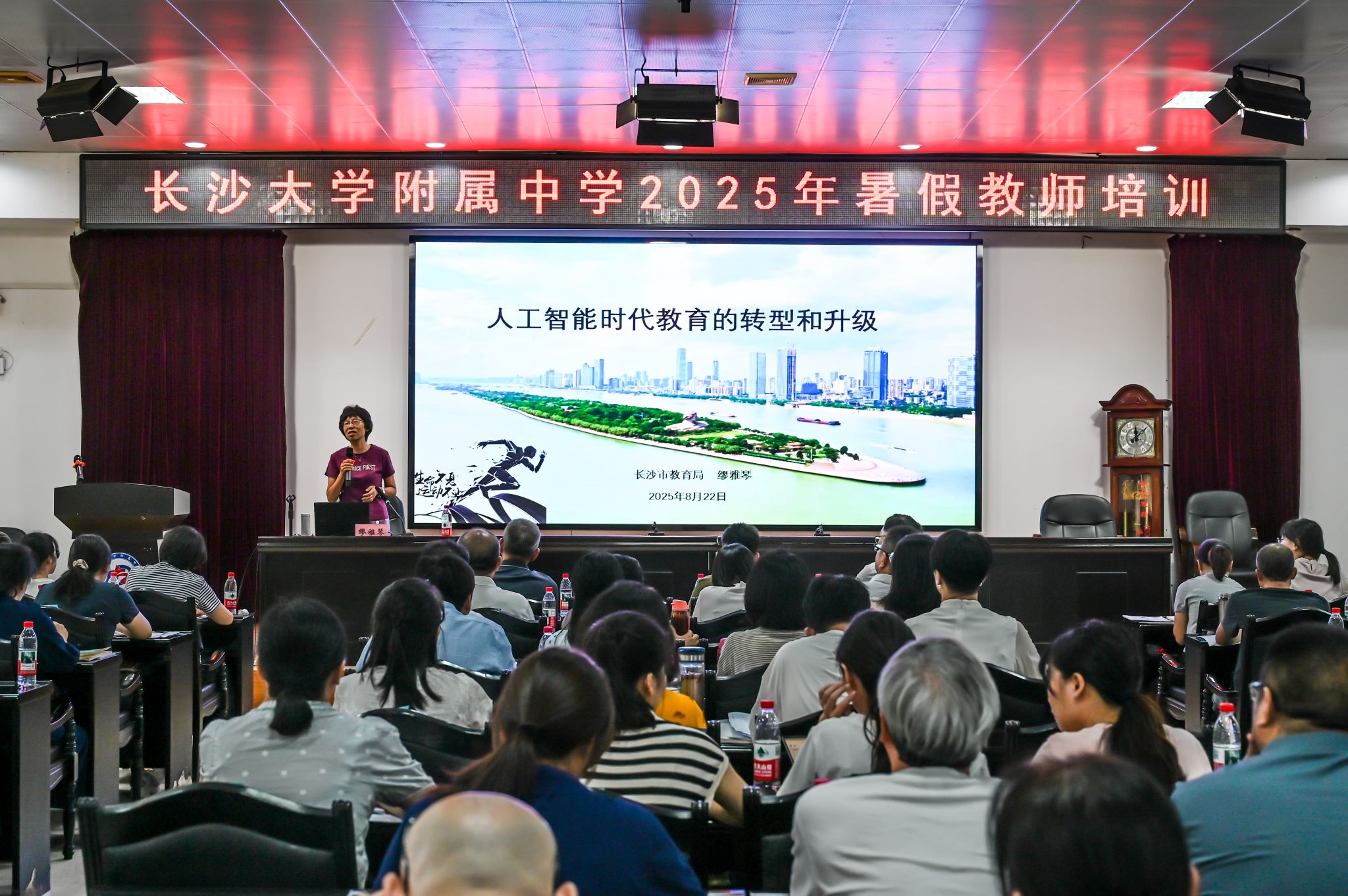 长沙市教育局原党委委员、副局长缪雅琴应邀莅临我校,带来了题为《人工智能时代教育的转型和升级》的专题报告。她立足全球教育发展前沿,从时代背景、教育转型、教师队伍建设等方面,深入剖析了人工智能技术对教育生态的深刻影响。缪雅琴以ChatGPT、生成式人工智能等前沿科技为例,生动演示了AI在个性化学习、教学辅助和课堂创新中的实际应用,展现了AI赋能教学提质增效的显著成果,为一线教师探索智能教育路径、实践教学创新提供了前瞻指引和实用参考。