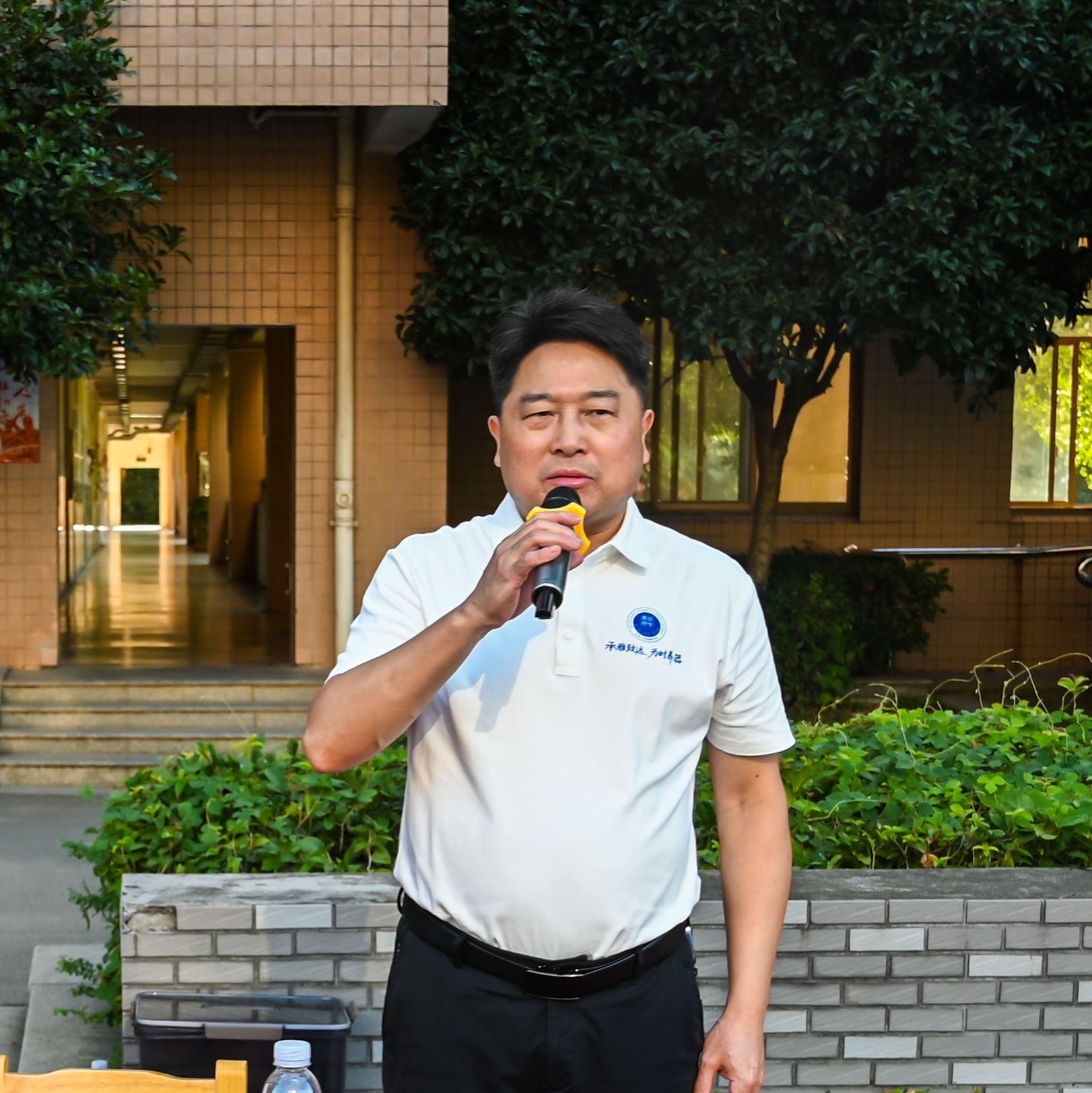 升旗仪式礼毕后,王唯之校长发表了热情洋溢的动员讲话。他表示,今年正值中国人民抗日战争暨世界反法西斯战争胜利80周年,先烈们用血肉之躯筑起钢铁长城赢得胜利。军训不仅是一次体能的淬炼,更是一堂生动的爱国主义教育实践课。王校长对同学们提出三点希望:端正态度,刻苦训练;严守纪律,团结协作;科学参与,确保安全。希望同学们在军训中锻炼体魄,传承民族精神,建立担当意识,以奋斗之姿向历史致敬、向未来启航。