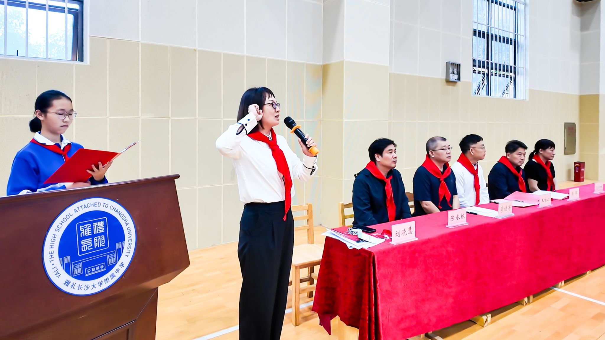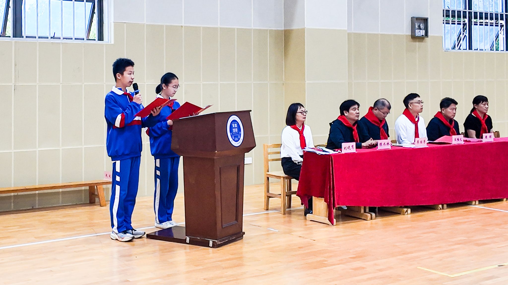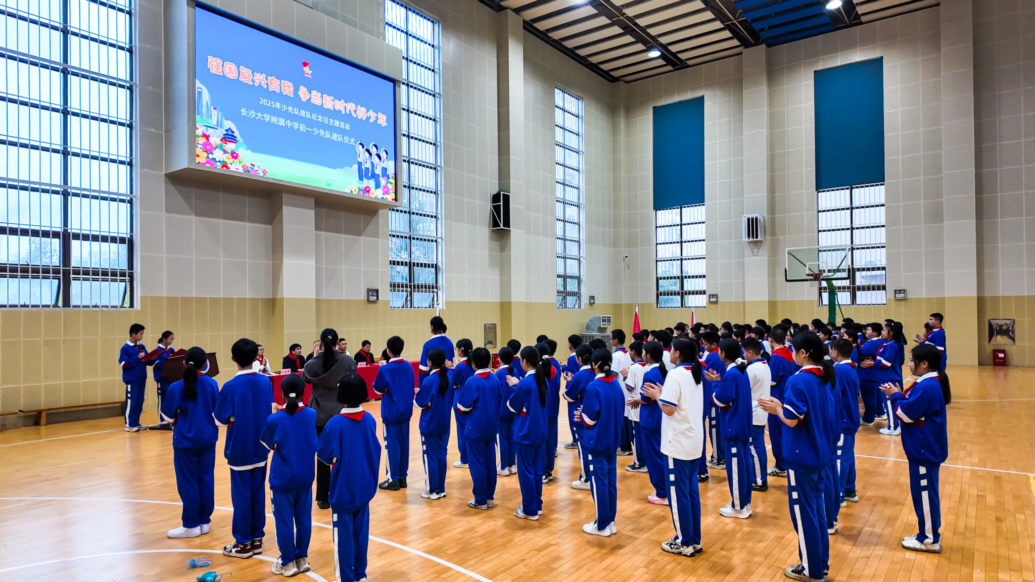 10月13日,我校在体育馆举行初一年级少先队建队仪式。全体队员身姿挺拔、整齐列队,迎接属于他们的红色荣光。仪式由胡佩涵、胡嘉乐同学主持。