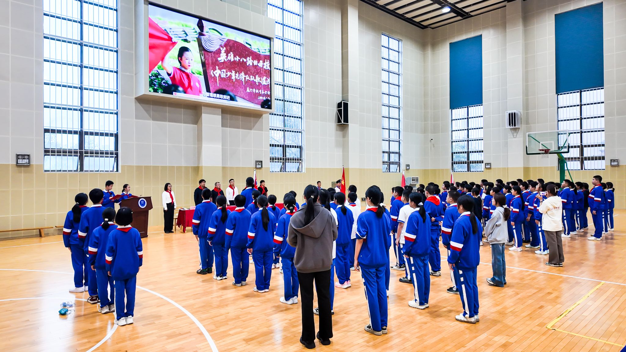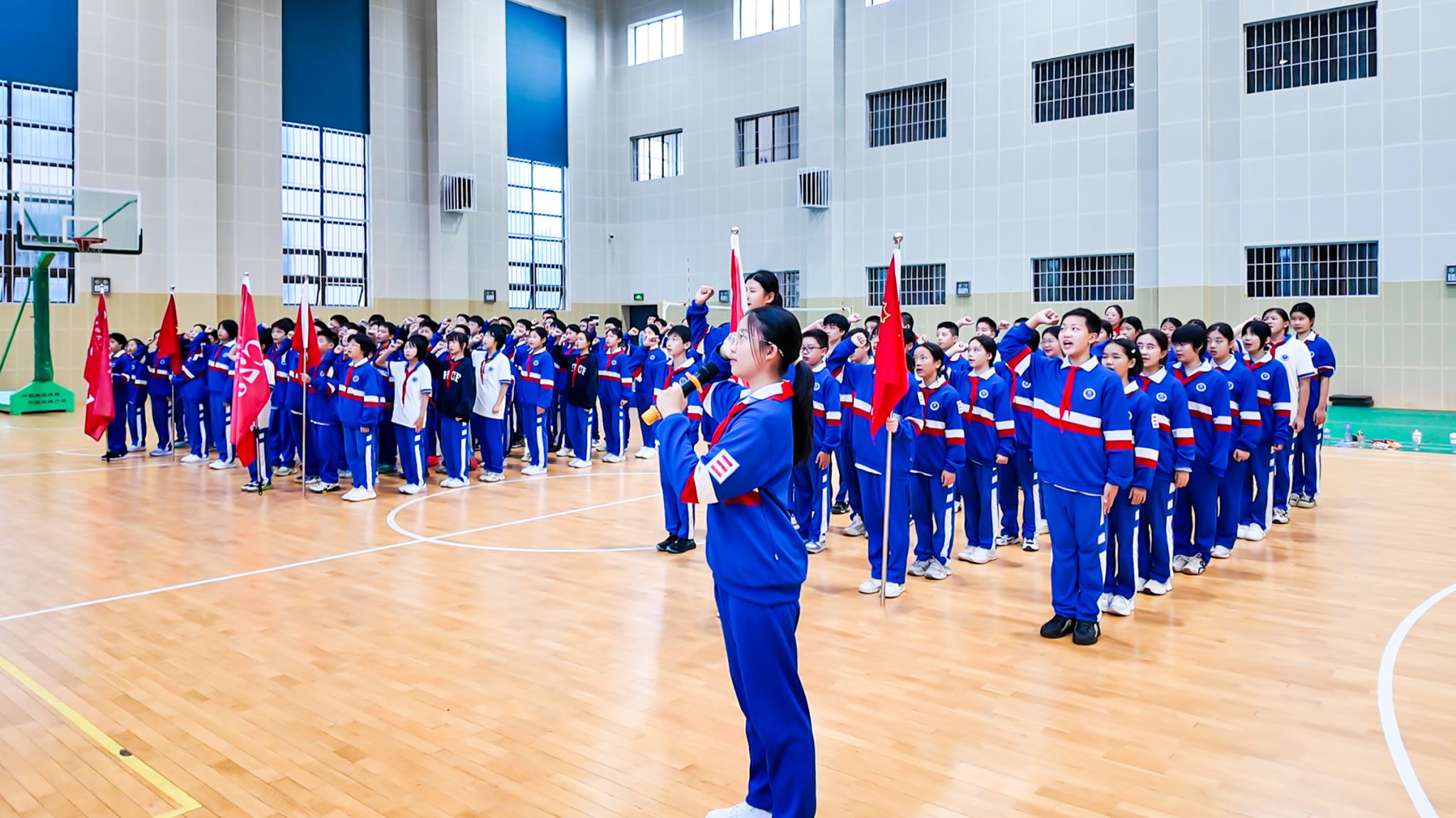 歌声嘹亮,激荡校园。队员们齐唱队歌,传递出对少先队组织的热爱与自豪。
