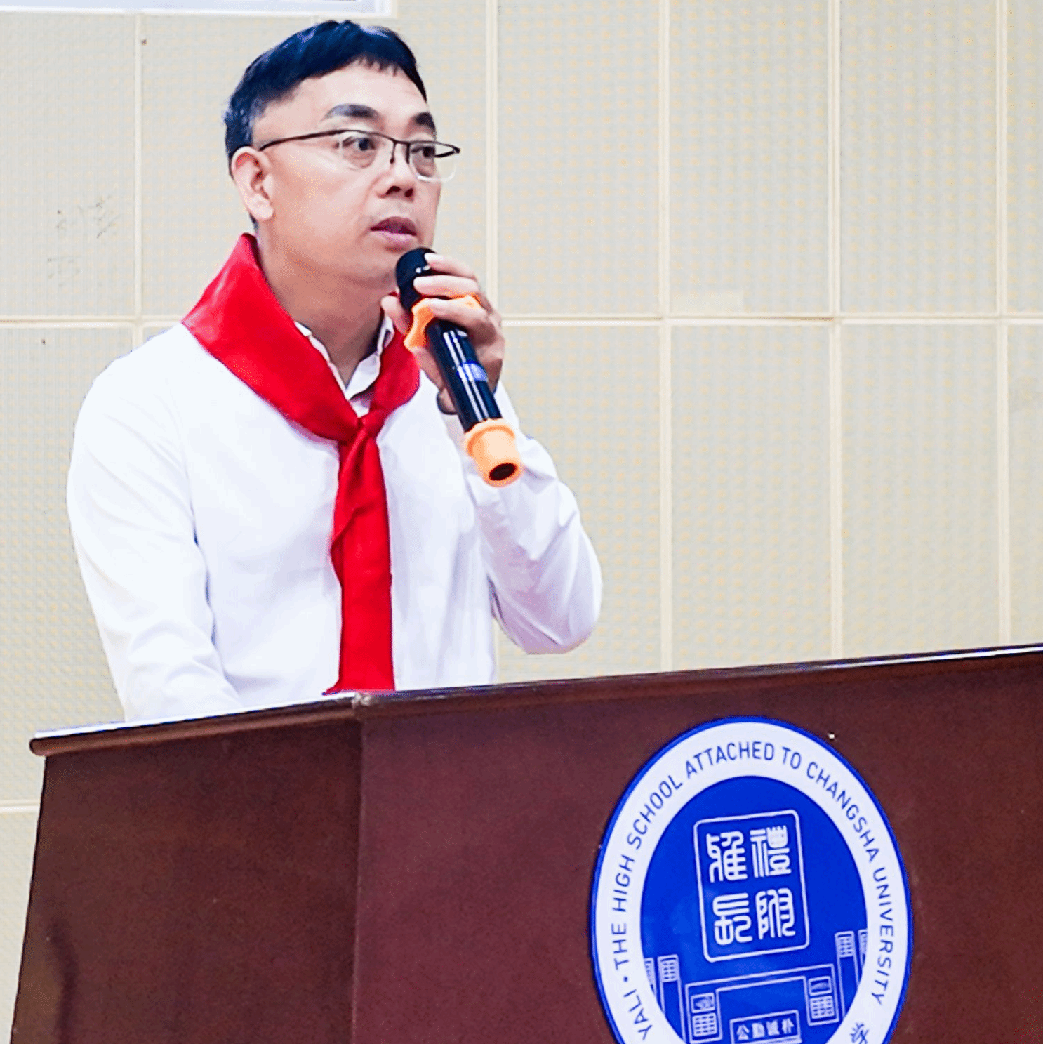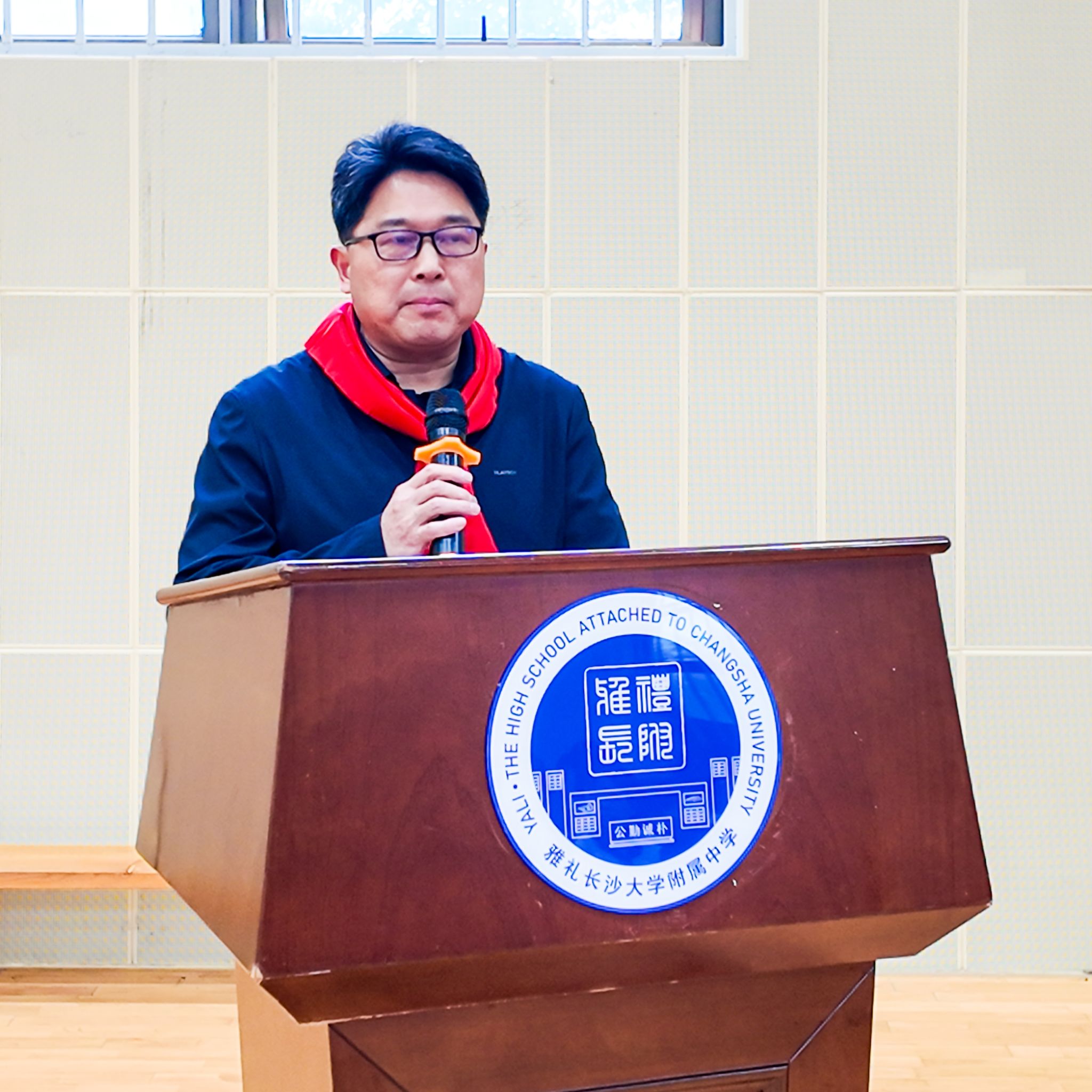 王唯之校长讲话,他指出,今年建队日的主题是“强国复兴,争当新时代好少年”,这是时代的召唤,也是党和人民对广大少先队员的深切期望。围绕这一主题,校长向全体队员提出三点希望: