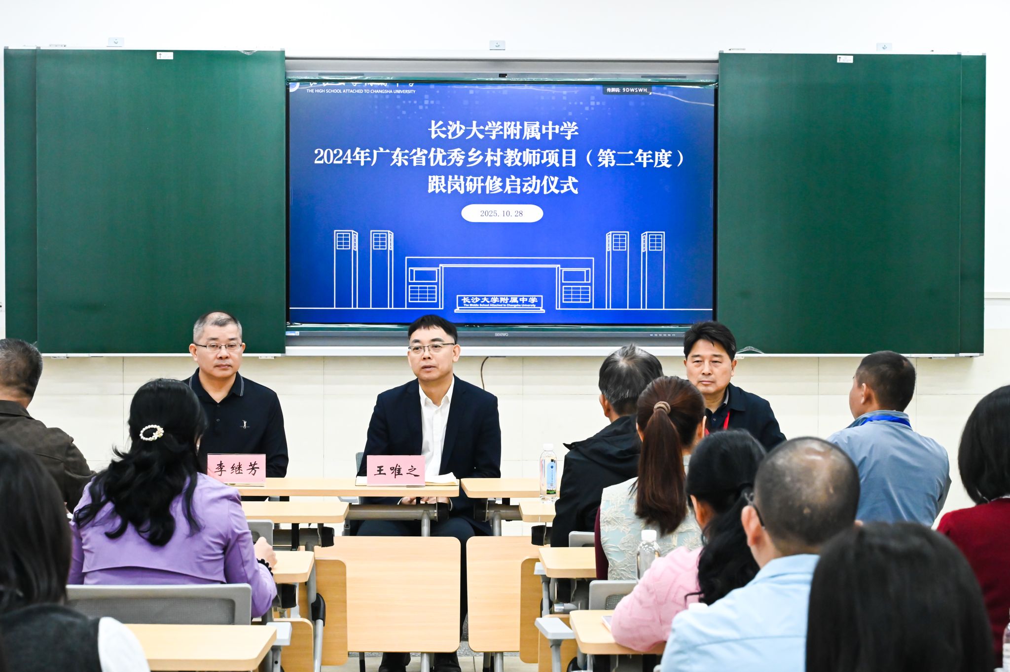 2025年10月28日-30日,长沙大学附属中学迎来广东省16名优秀乡村教师,开展为期三天的“影子跟岗”深度研修。本次活动通过沉浸式校园体验、前沿专题研讨与深入课堂听课评课,深化省际交流,共促教育发展。
