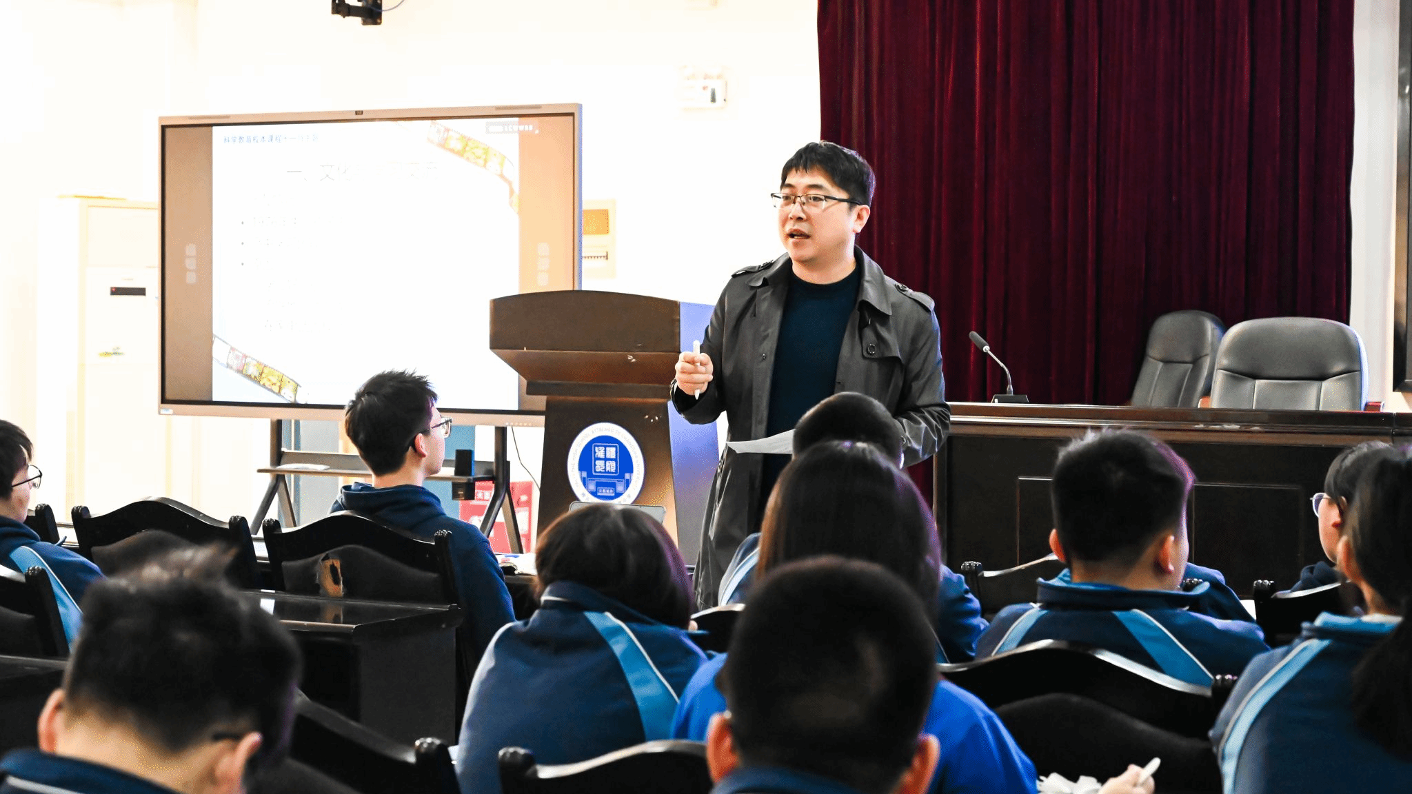 讲座现场气氛活跃,教授们立足专业积淀,兼顾中学学情,将前沿知识转化为生动易懂的教学内容。课堂通过问答互动、案例分析等方式,有效调动了学生的参与热情。同学们专注倾听、积极发问,围绕课程内容与教授展开讨论,将课堂所学与课本知识、现实观察有机结合,切实达到了“学思用贯通”的育人实效。一位学生在课后分享道:“这门课不仅让我们接触到课本以外的知识,也让我更清晰地看到不同学科之间的关联。”