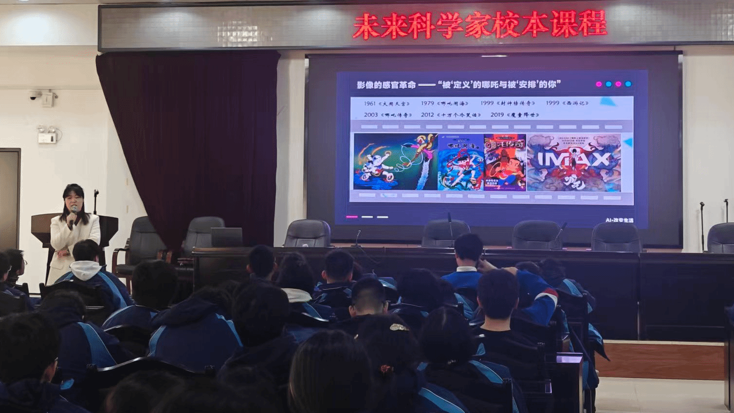 马栏山新媒体学院梁湘梓教授的《“七十二变”:从神话到手机屏幕的穿越之旅》,以经典文化IP“哪吒”为研究案例,系统阐释了传统文化如何通过现代媒介技术实现创新性转化,引导学生深入理解科技对文化传播、形象重塑与价值传递的当代意义。该课程巧妙融合语文与政治学科素养,通过“神话+科技”的跨维解读,呈现技术与文化的精彩对话,为学生打开一扇看见数字时代文化创新的窗口。
