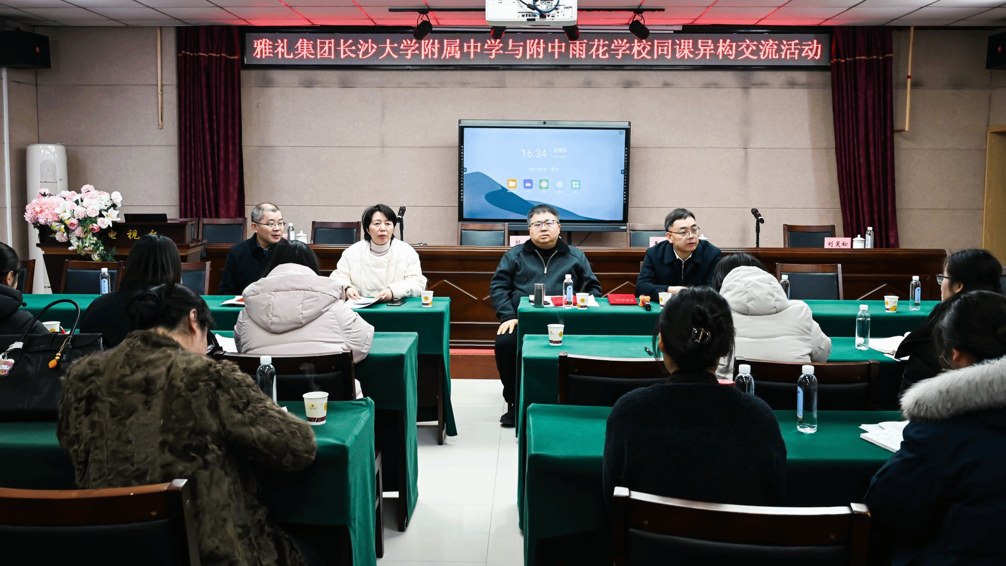 2026年1月8日,长沙大学附属中学(以下简称“长大附中”)与湖南师大附中雨花学校在长大附中联合举办“智慧课堂·同课异构”校际教学交流活动。两校高中语文、物理教师全员参与,长沙市教育科学研究院学科教研员刘兵、周煌军现场指导,共同呈现了一场聚焦信息技术与教学深度融合、推动课堂智慧化转型的深度研讨。
