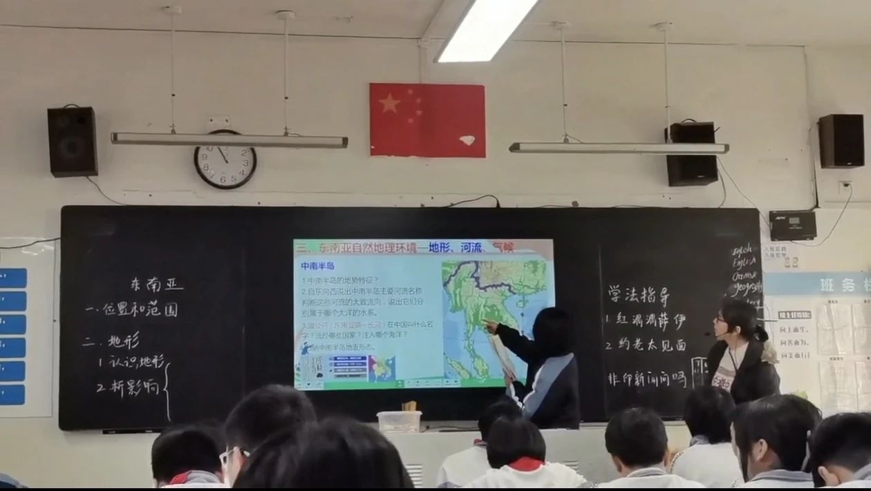 跑操结束后,我们分别观摩了初一的历史和地理课堂。课堂是教学质量的核心阵地,踏入C2402班历史课堂,仿佛开启了一场穿越时空的奇妙旅行。廖老师巧妙地运用历史故事、珍贵史料与课外材料解读等方式,将古老的历史鲜活地呈现在学生眼前。通过这样的教学,学生们不再是死记硬背历史事件,而是深入理解历史发展的脉络与规律,培养了批判性思维与历史洞察力,这与学校培养学生独立思考能力的理念高度契合。