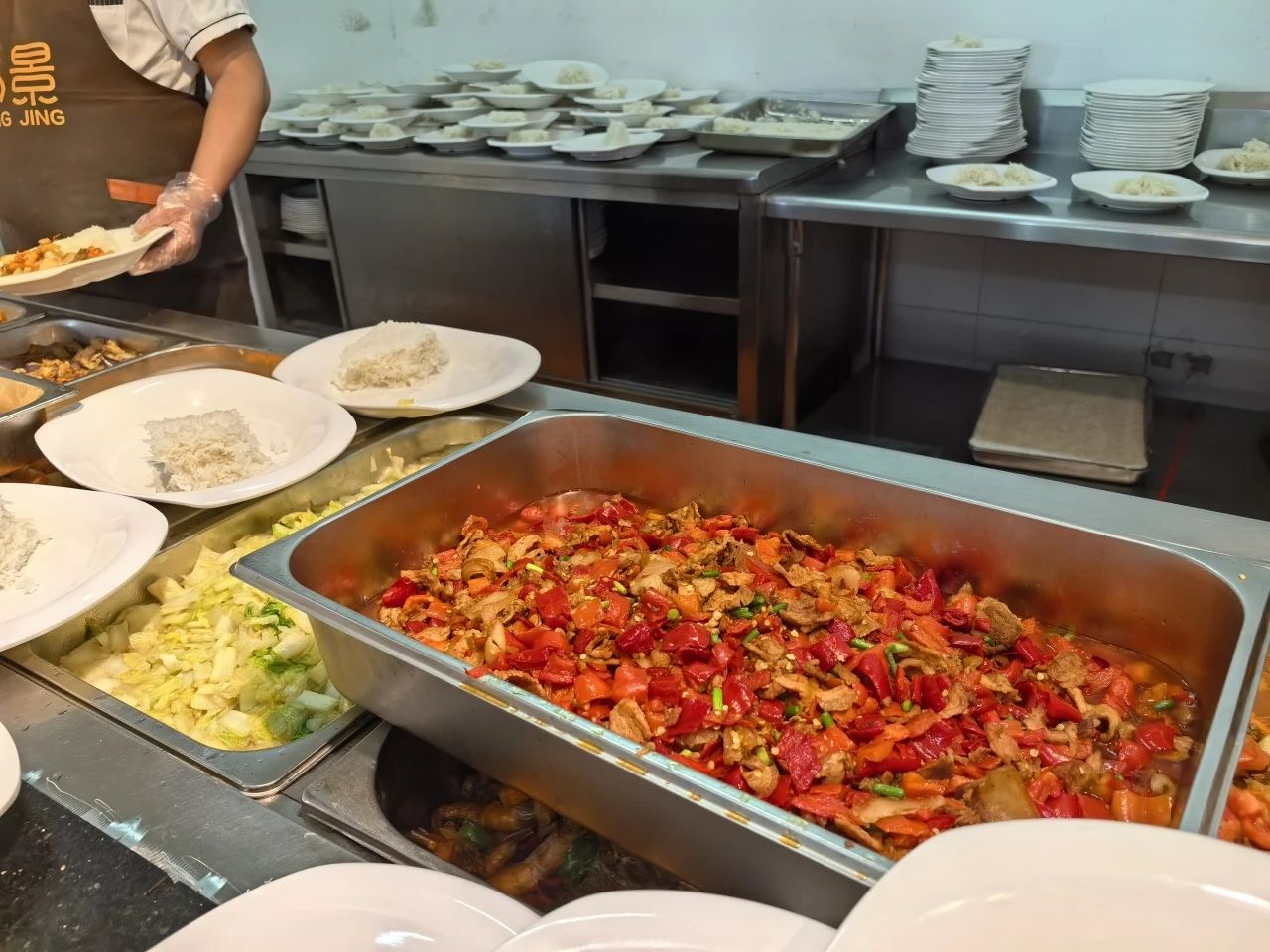中午时分,家长们和学生携手走进食堂。食堂干净整洁的就餐环境让人眼前一亮,菜品丰富多样,每一道菜都香气四溢。而且,学校严格规范食品卫生管理,工作人员全程佩戴口罩手套、碗筷严格消毒,这为食品安全构筑起一道坚不可摧的防线,让我们无比放心。