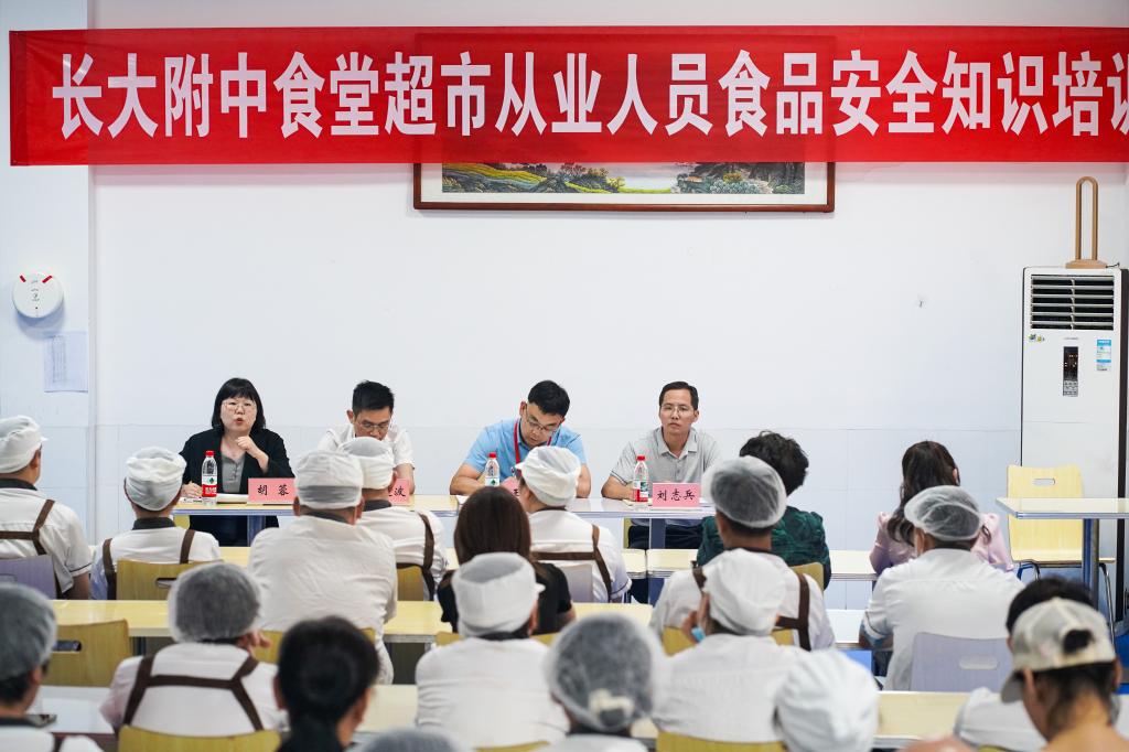 为进一步强化校园食品安全管理,提升从业人员责任意识与规范操作水平,近日,我校组织召开了食堂超市从业人员食品安全知识专题培训会。校长王唯之、餐饮运营总监徐远波、稽核经理胡蓉以及学校后勤负责人、食堂超市全体从业人员参会,会议由总务处主任刘志兵主持。