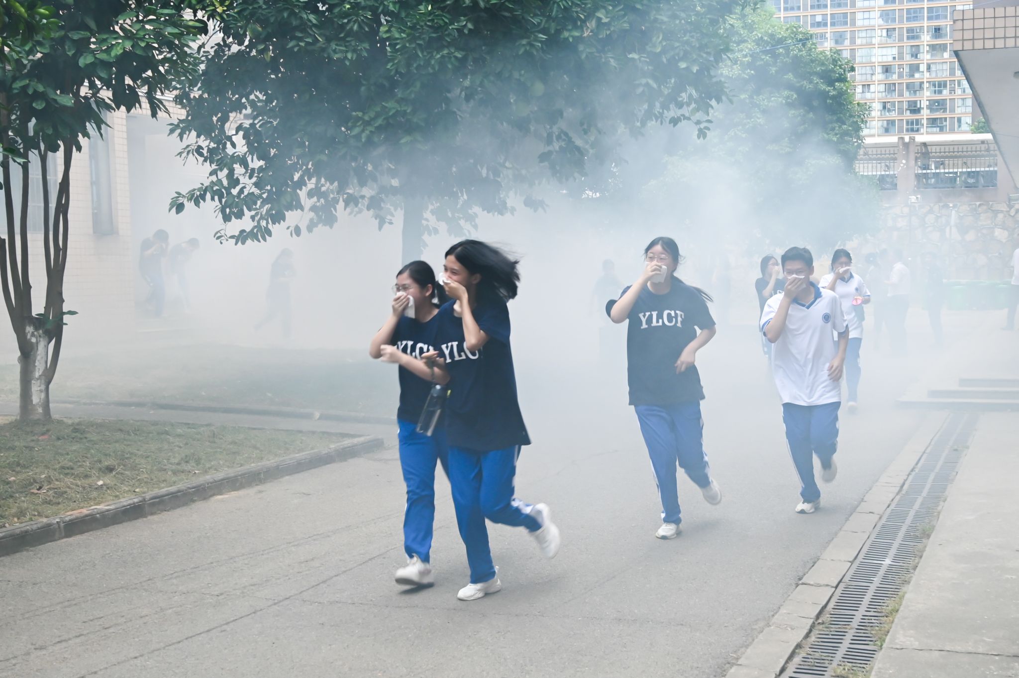 演练总指挥、副校长赵波一声令下,各岗位教职工迅即就位,严阵以待。十分钟后,烟雾弹准时引爆,模拟浓烟迅速封锁楼道,演练正式拉开序幕。