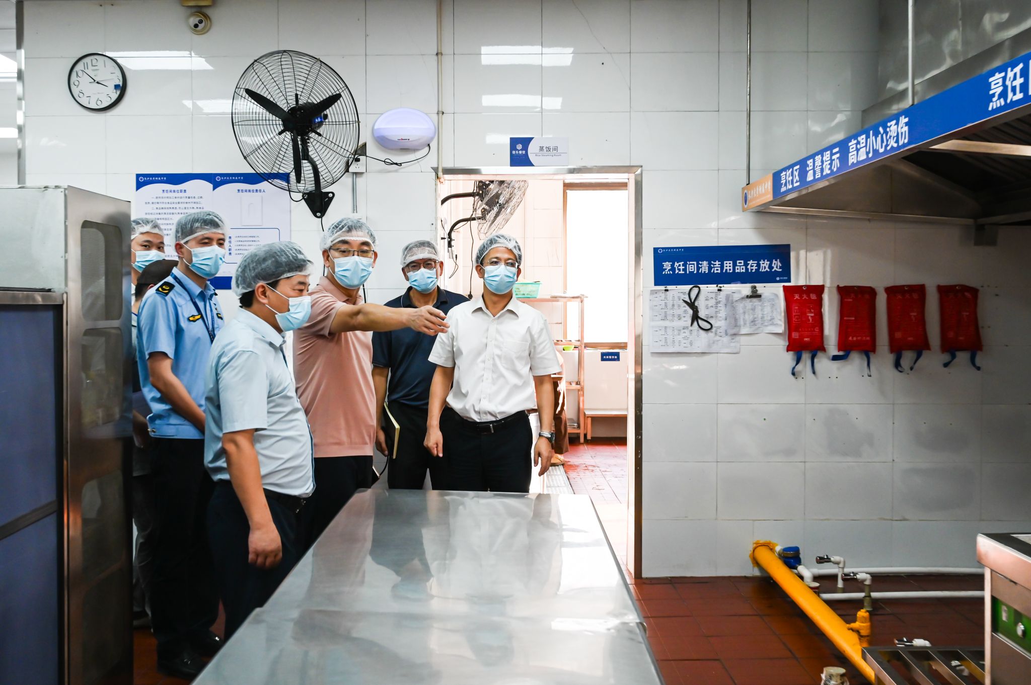9月4日下午,开福区委副书记、区长高伟带领相关部门负责人莅临我校进行食堂食品安全调研。校长王唯之、后勤副校长赵波及食堂管理团队全程陪同调研。