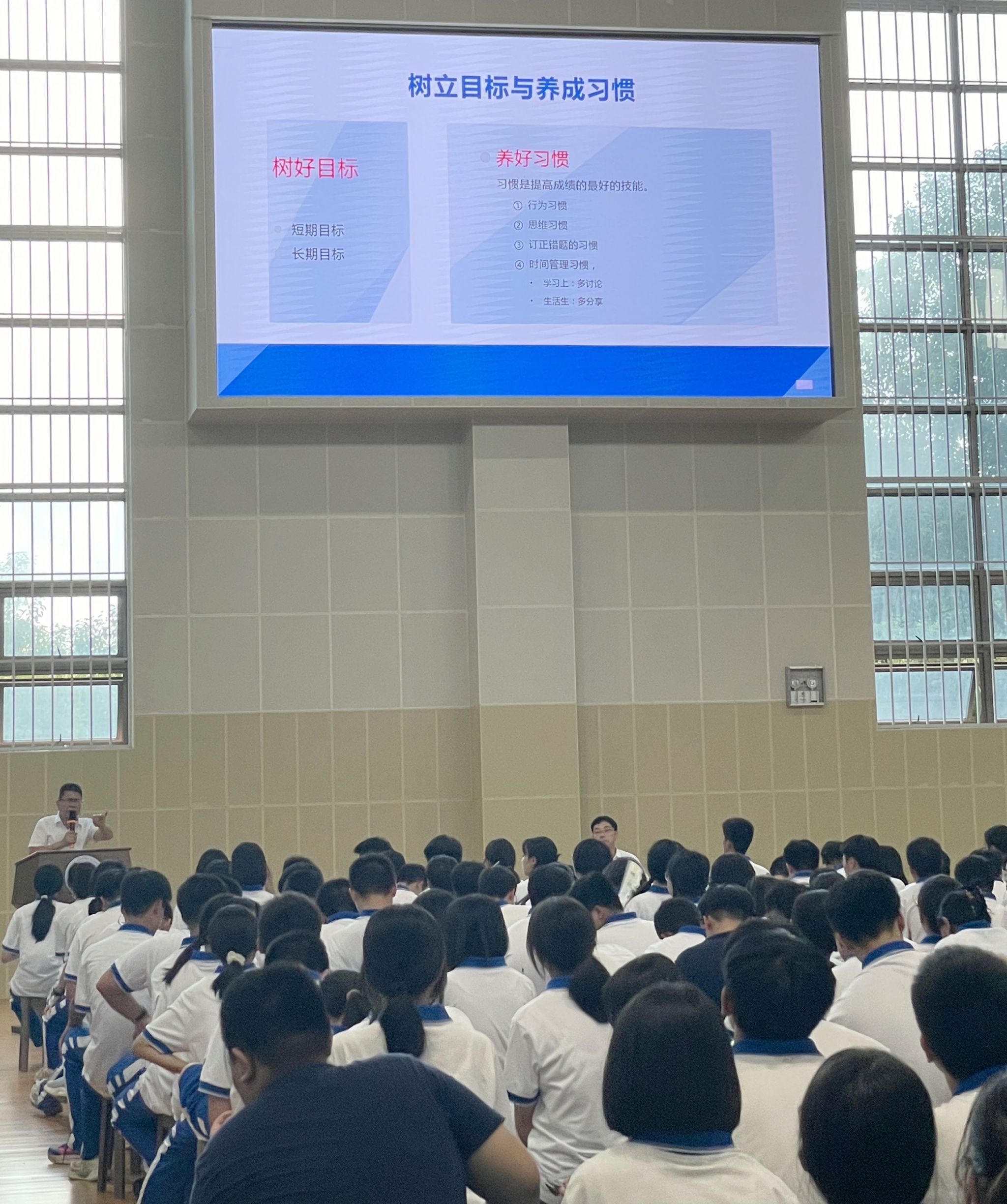 朱章桃主任从教学管理与学业发展的角度,为同学们深入分析了高中阶段的学业特点与潜在挑战,强调了习惯养成、目标树立和时间管理的重要性。他通过详实的数据、鲜活的案例,展现了学校的奋进之势与教师的敬业风貌,让同学们对未来的学习生活充满了无限憧憬与期待。