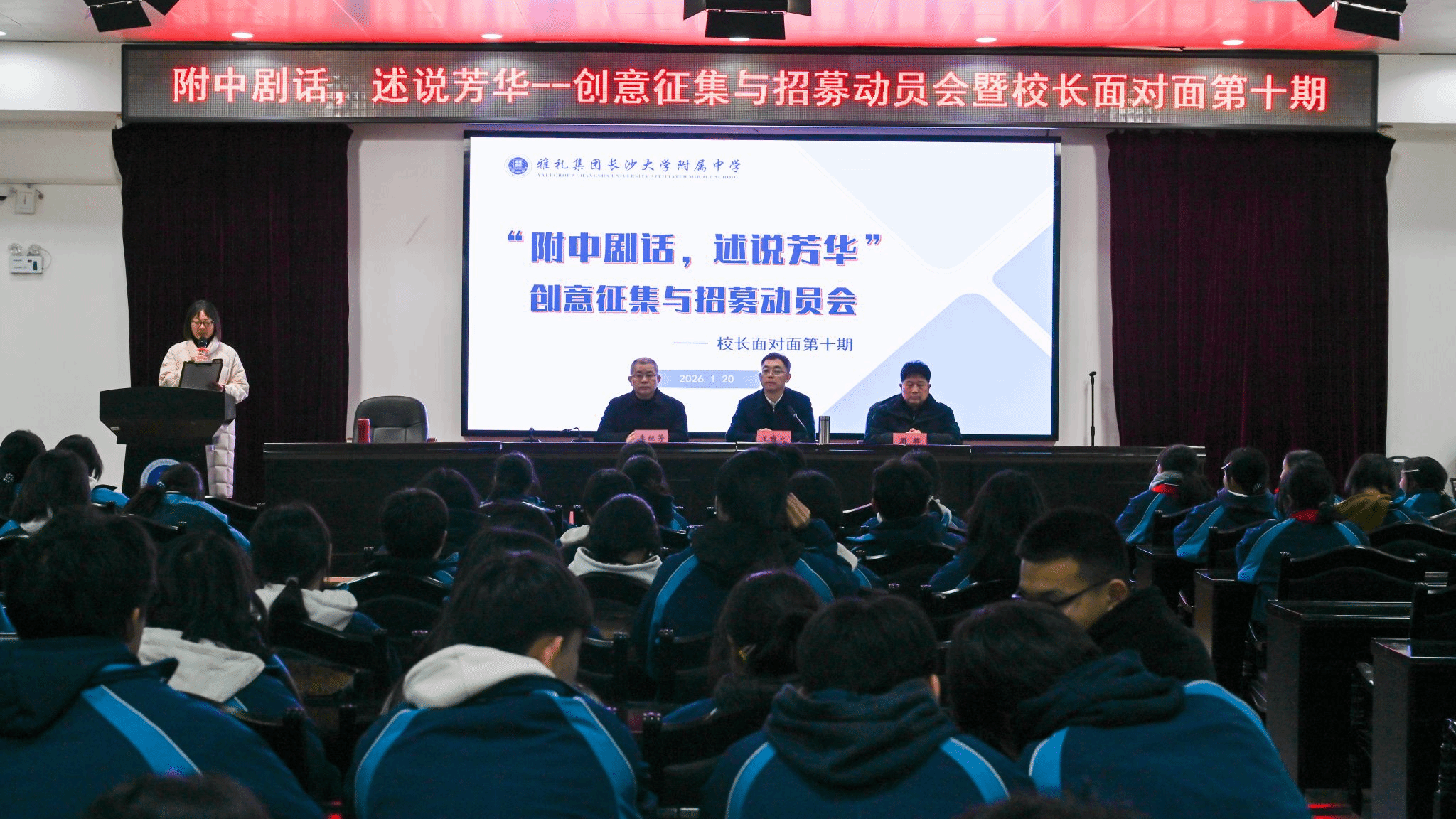 听青春声音,聚创意力量!1月20日,我校成功举办校长面对面第十期暨“附中剧话,述说芳华”创意征集与招募动员会。校领导、相关部门负责人与学生骨干及创作代表齐聚一堂,围绕校园短剧创作与演员招募展开深入交流。会议旨在引导学生创作贴近实际、传递正能量的青春作品,以剧为媒,讲好附中故事,打造校园文化宣传新名片。