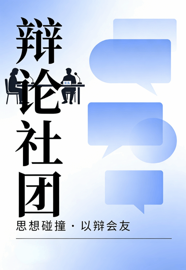 社团简介:辩论,是思维的交响,是语言的舞蹈。在辩论社,我们将带你系统学习辩论技巧——从立论陈词到自由辩论,从逻辑构建到临场应变,每一场比赛都是对脑力与口才的双重锤炼。我们不只教你如何“说”,更教你如何“想”。加入辩论社,让思考更有深度,让表达更有风度,让每一次发声,都掷地有声。